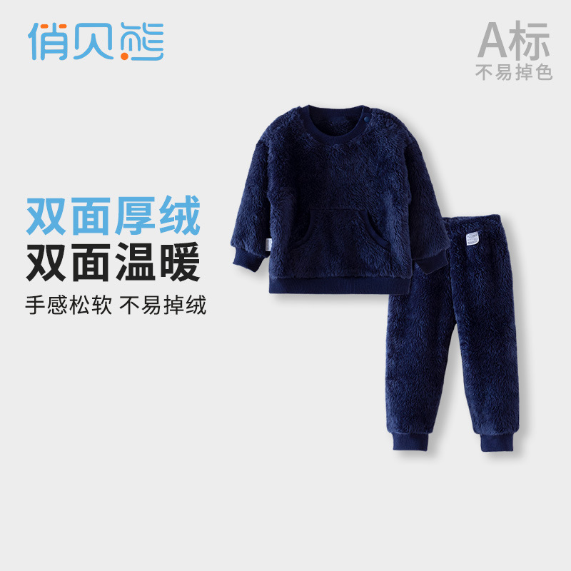 가을과 겨울 모피 홈 옷 세트 플란넬 풀오버 잠옷 소년 소녀를위한 대형 어린이 기모 따뜻한 옷을 쪼개다스토어 가기