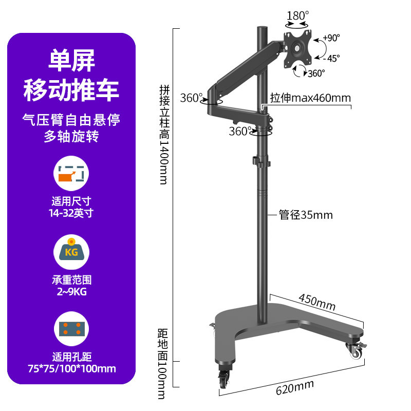 • 17-34inch / 단일 스크린 공기압 리프팅 헤드/블랙 모바일 모델