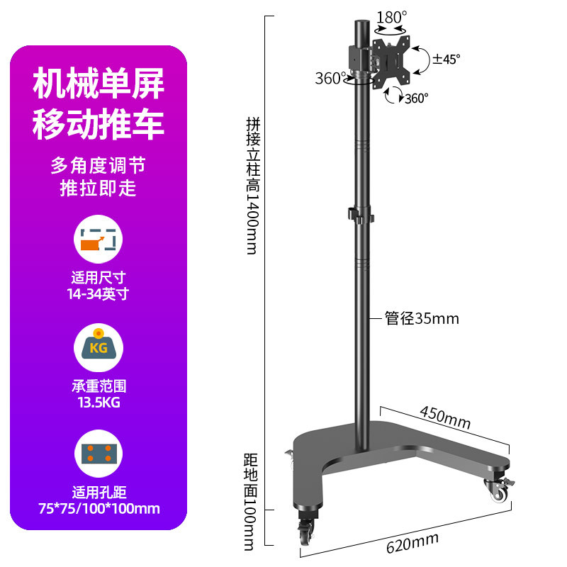 • 17-34inch / 싱글 스크린 고정 헤드/블랙 모바일 모델