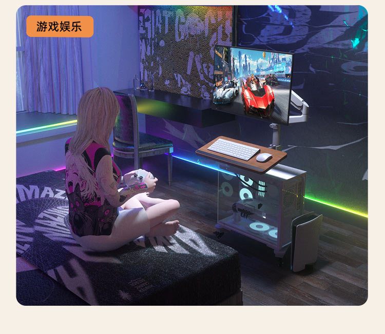 도매 24/27/32 인치 모니터 바닥 움직일 수있는 브래킷 우울증 각도 누워 보이는 카트 키보드 브래킷