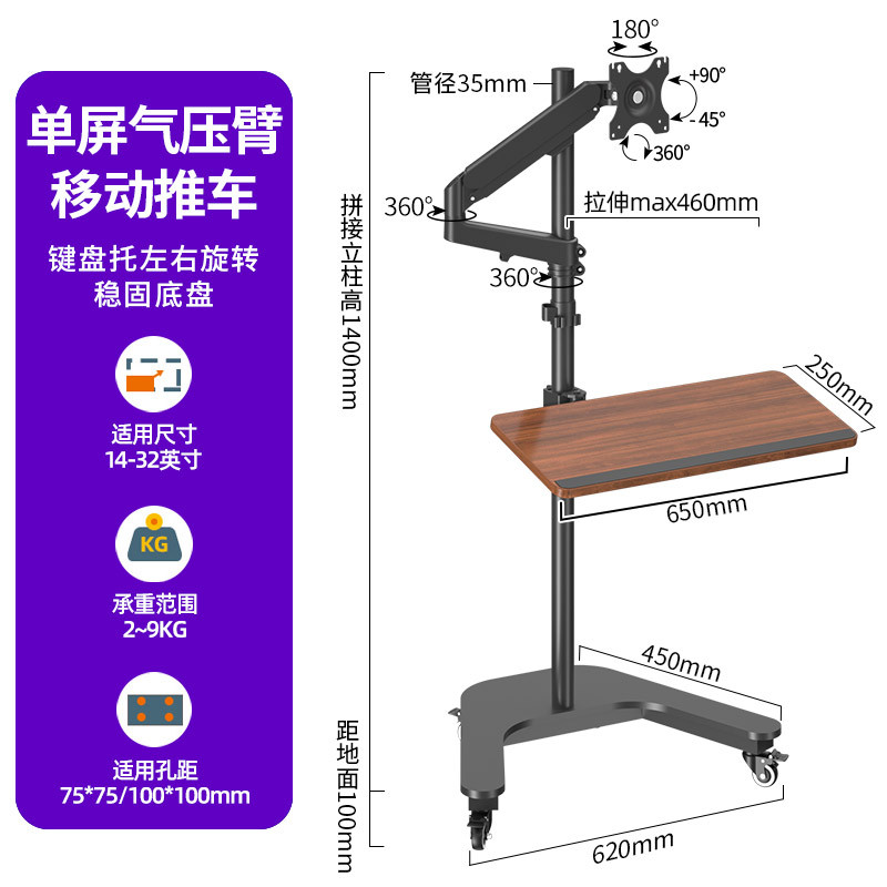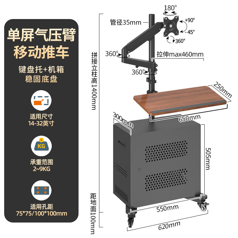 • 17-34inch /싱글 스크린 공기압 리프트 헤드/블랙 모바일 모델/키보드 트레이 포함
