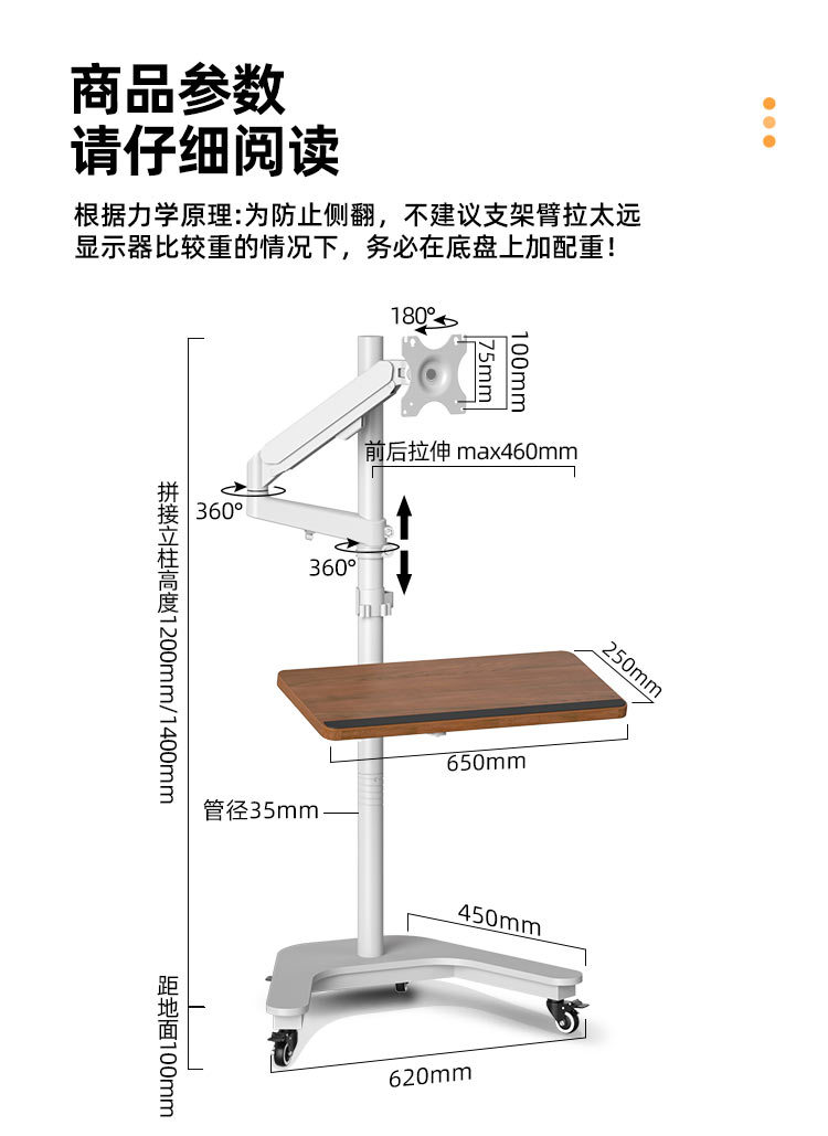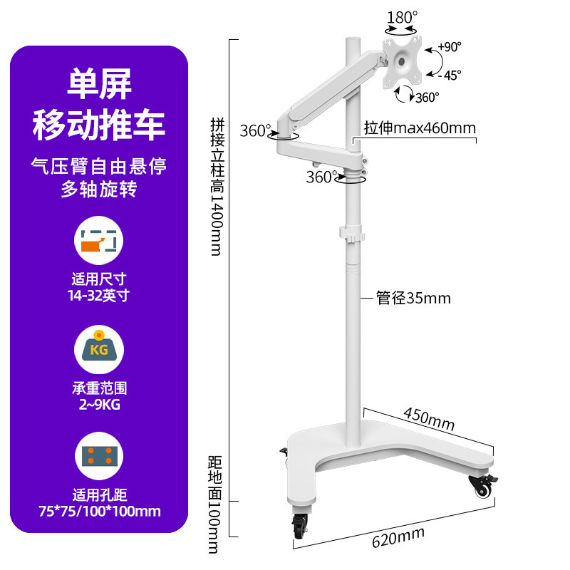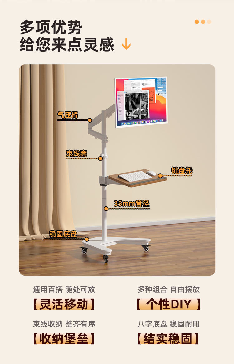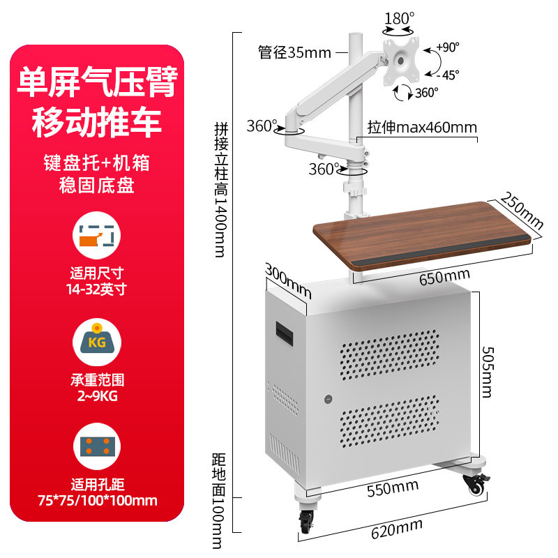 • 17-34inch /싱글 스크린 공기압 리프트 헤드/화이트 모바일 모델/키보드 트레이 및 섀시 포함