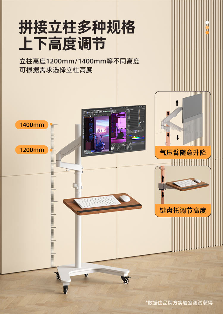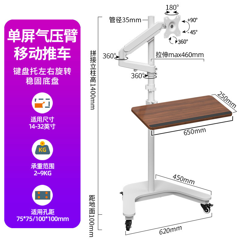• 17-34inch /단일 스크린 공기압 리프트 헤드/화이트 모바일 모델/키보드 트레이 포함