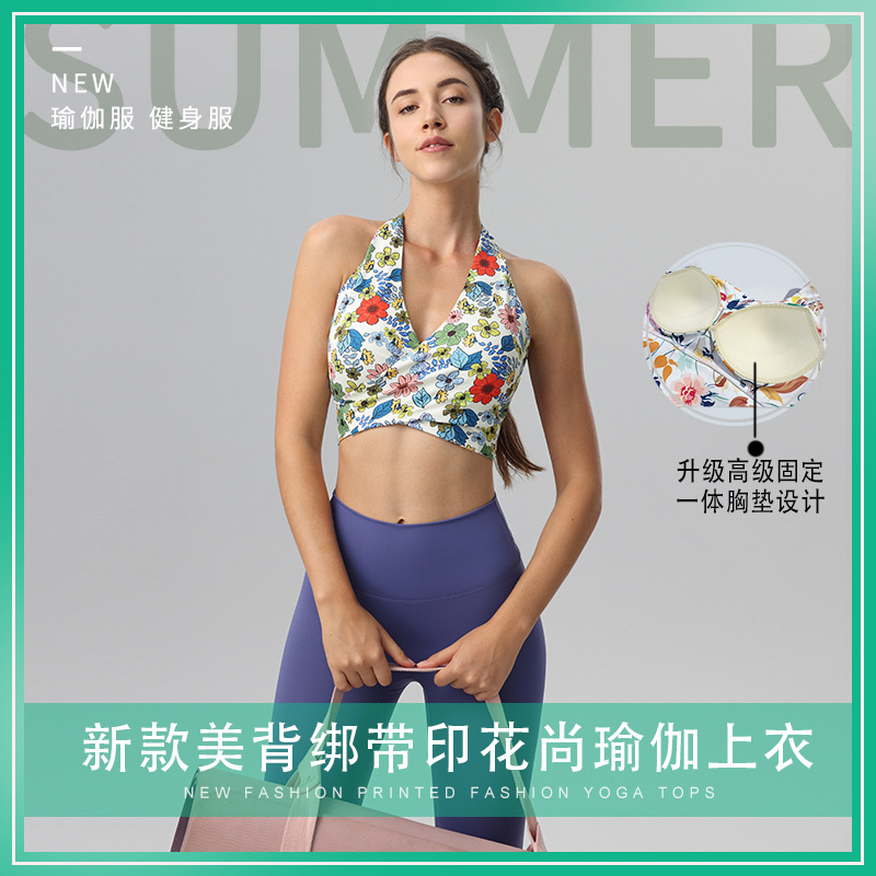 원피스 가슴 패드 뷰티 백 요가 조끼 여성 아우터웨어 섹시 스포츠 속옷 크로스 스트랩 필라테스 피트니스 브라