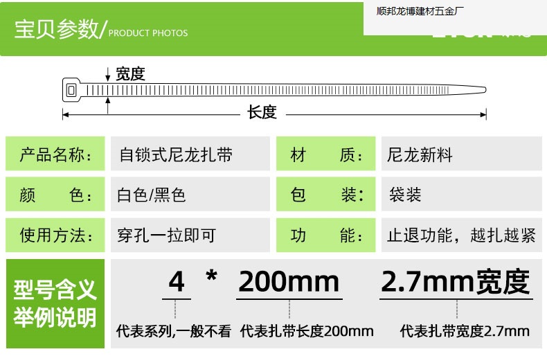 Zongyi 플라스틱 넥타이 자체 잠금 나일론 타이 바인딩 및 고정 Strangle Dog 산업 타이 화이트/블랙 타이스토어 가기