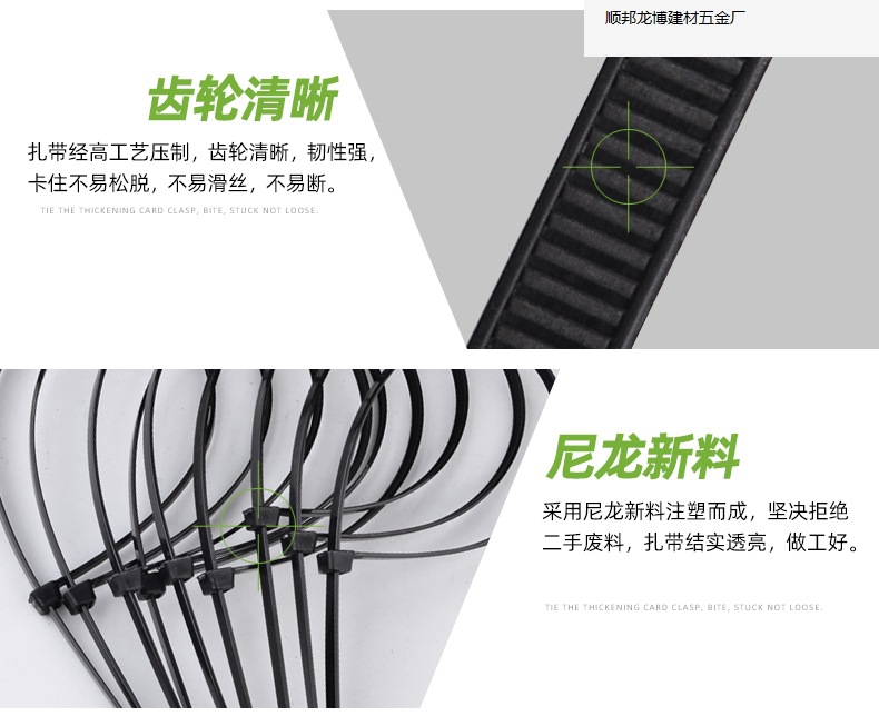 Zongyi 플라스틱 넥타이 자체 잠금 나일론 타이 바인딩 및 고정 Strangle Dog 산업 타이 화이트/블랙 타이