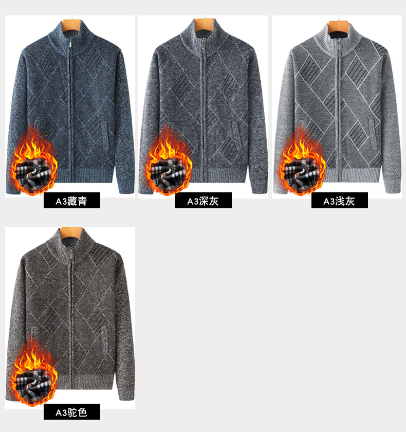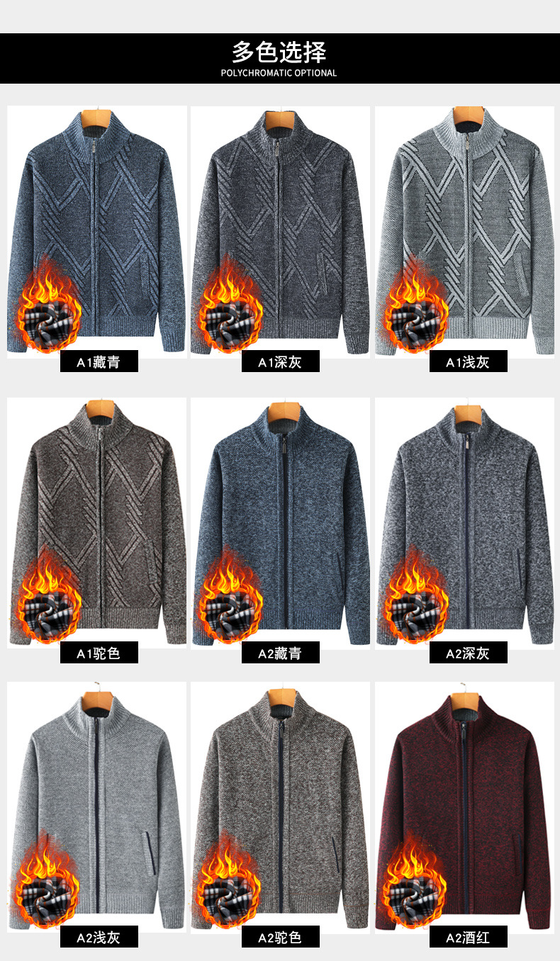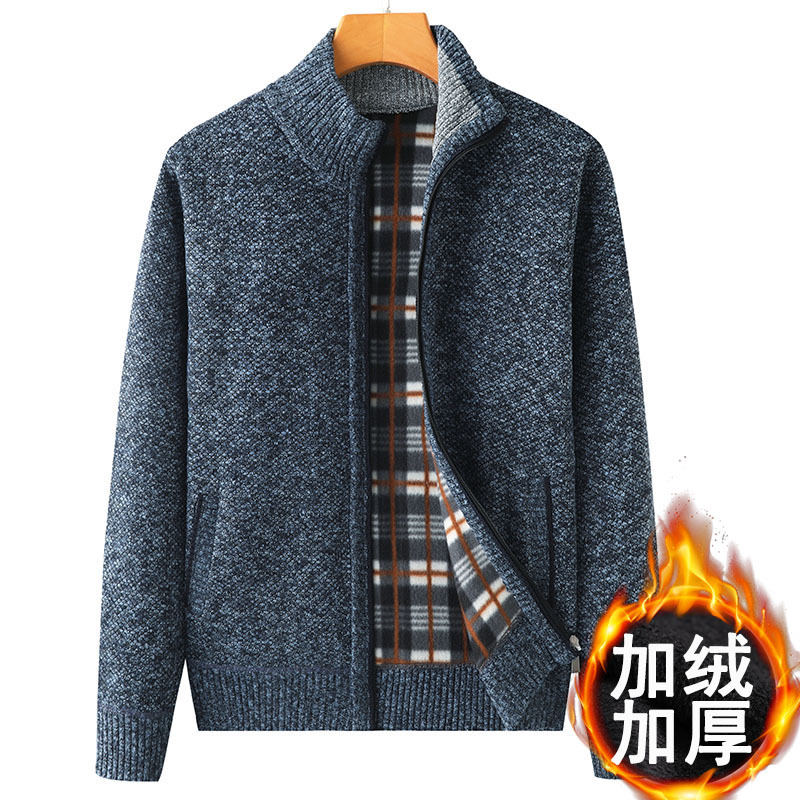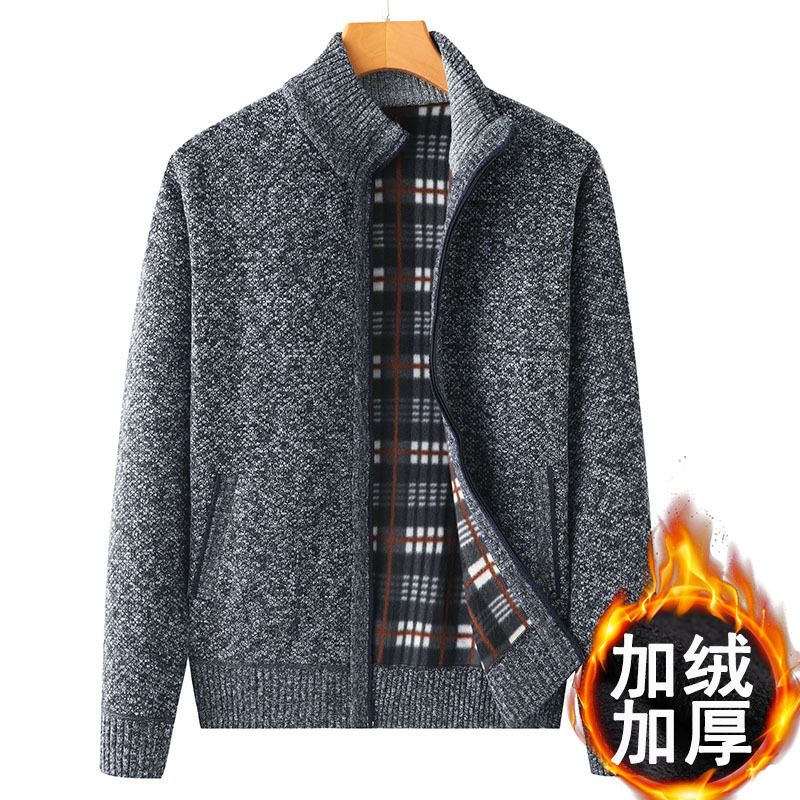 대외 무역 중년 남성 카디건 아빠 코트 기모 중년 및 노인 남성복을위한 두꺼운 가을 및 겨울 니트 플러스 사이즈 스웨터