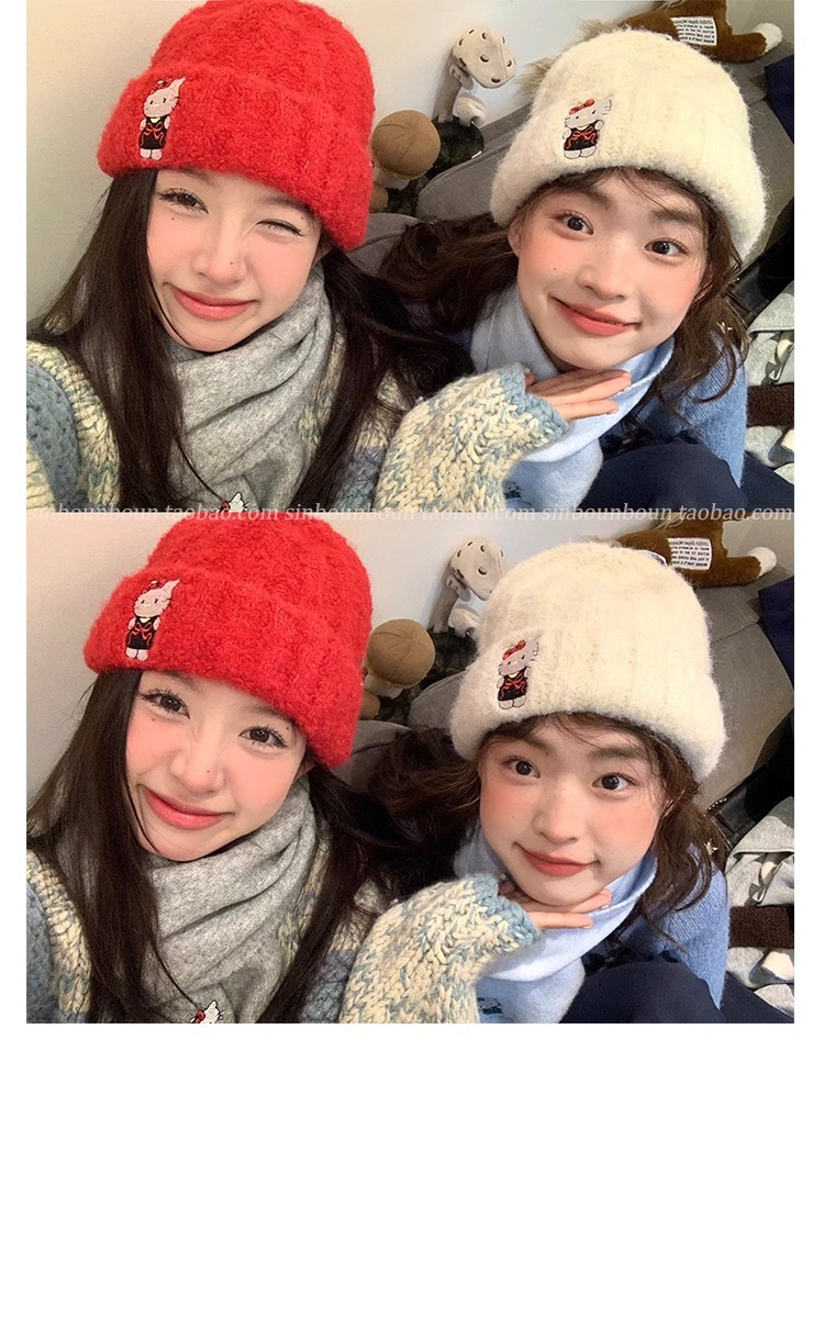 가을과 겨울 새로운 두꺼운 따뜻한 양모 모자 학생 아이들을위한 달콤한 귀여운 올 매치 만화 고양이 니트 모자 트렌디스토어 가기