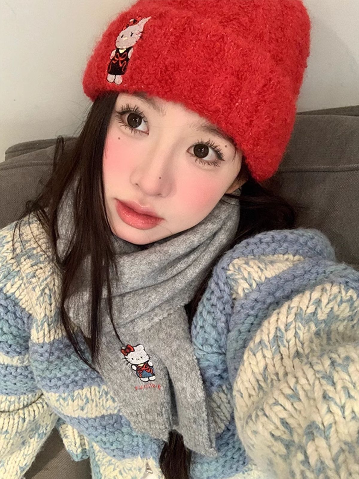 가을과 겨울 새로운 두꺼운 따뜻한 양모 모자 학생 아이들을위한 달콤한 귀여운 올 매치 만화 고양이 니트 모자 트렌디