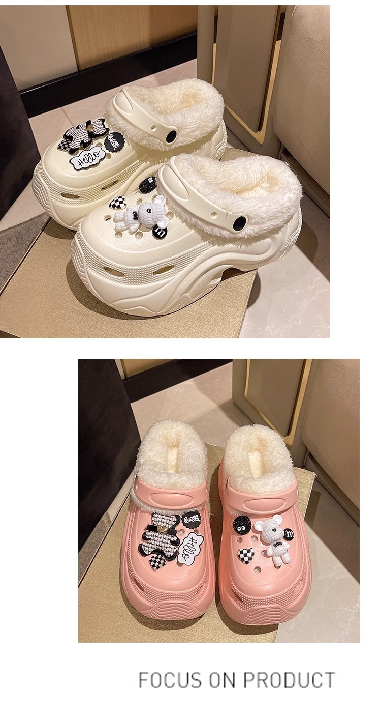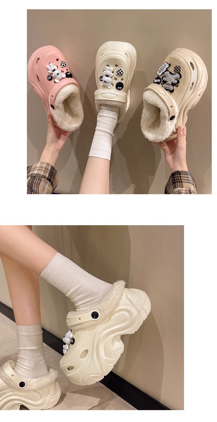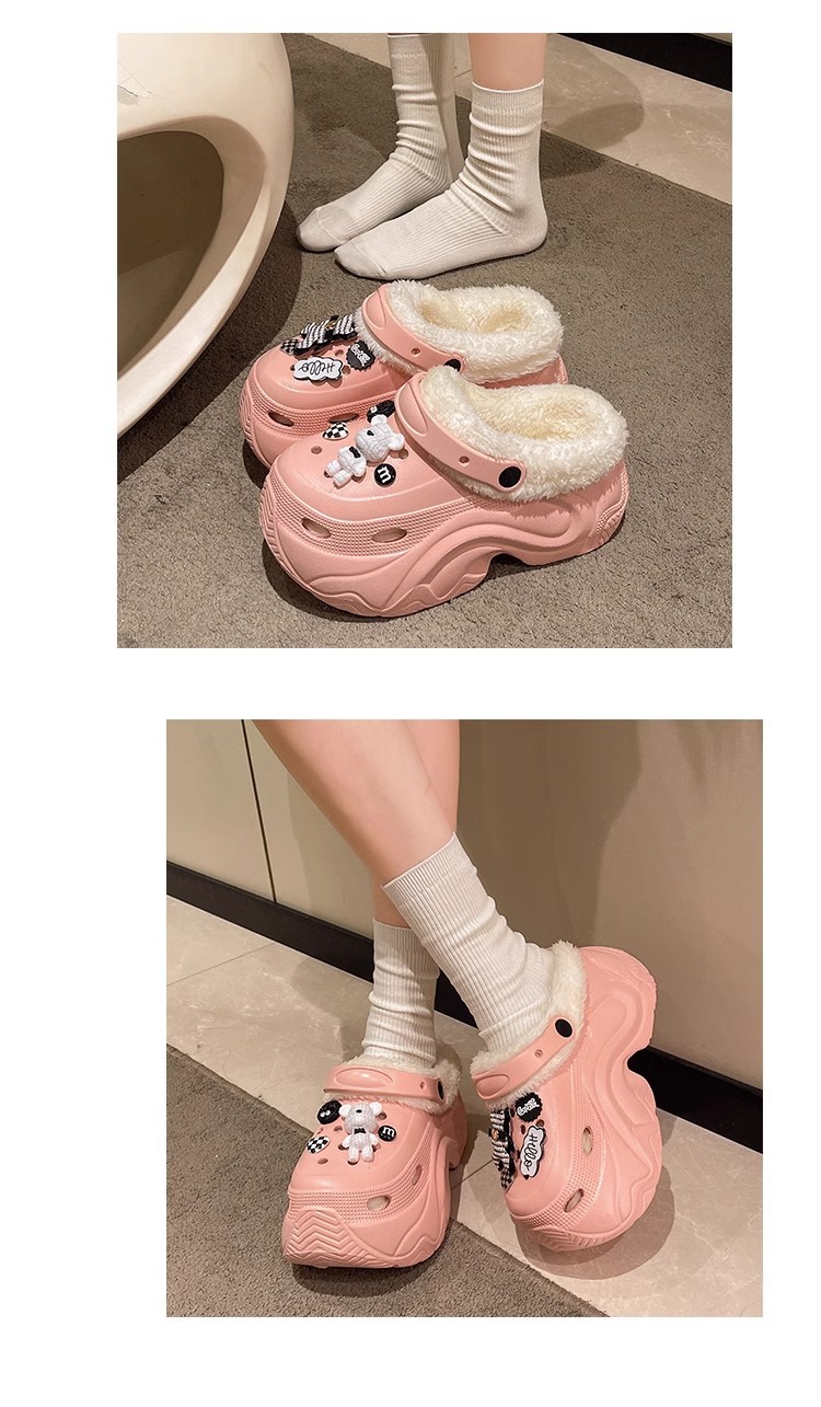 가을과 겨울 여성 기모 두꺼운 실내 홈 웨어러블 방수 미끄럼 방지 귀여운 내마모성 따뜻한 코튼 신발 구멍 신발스토어 가기