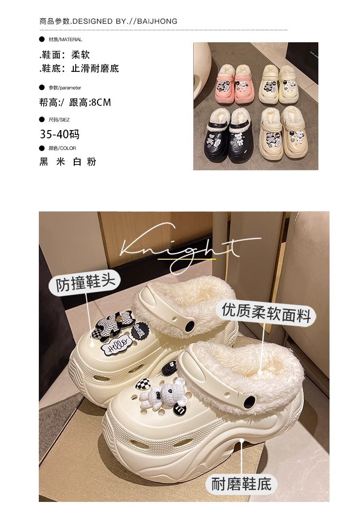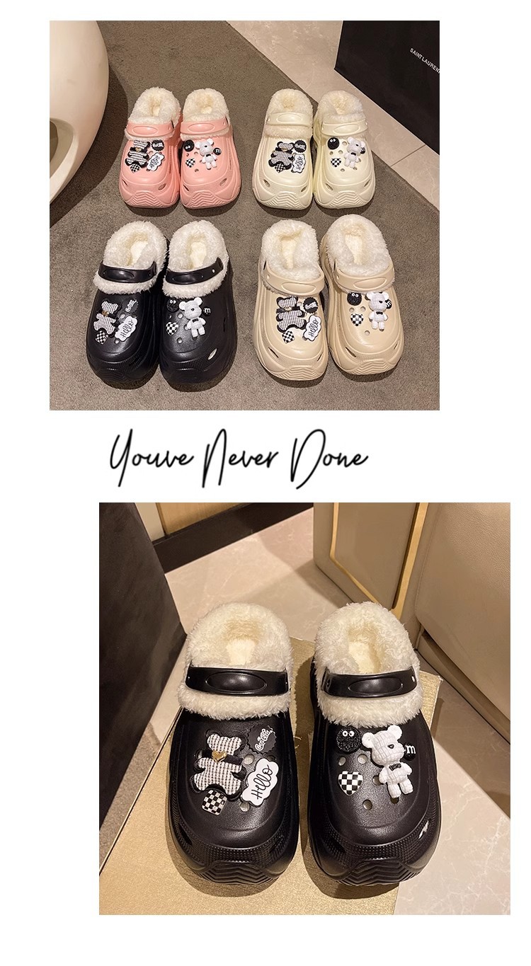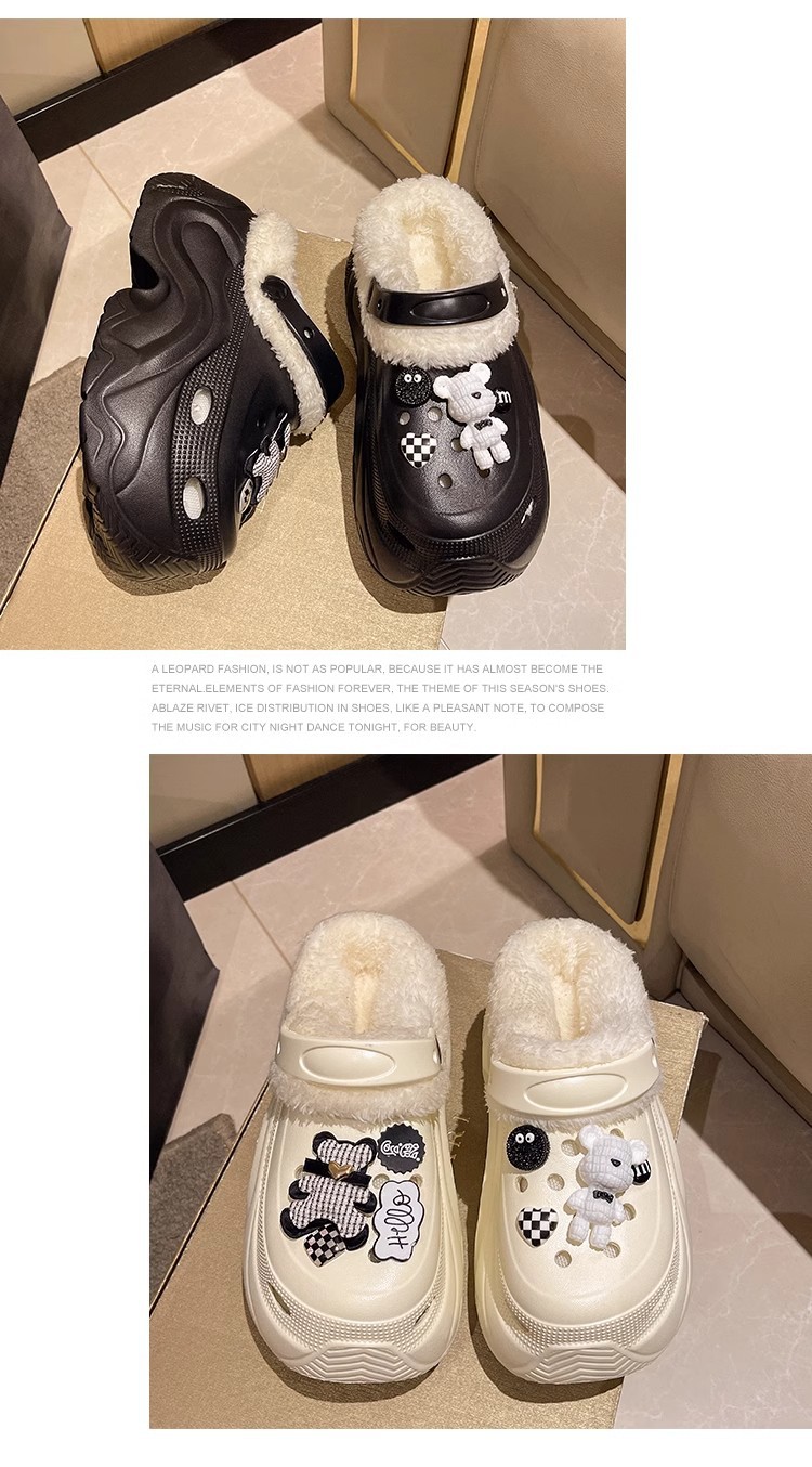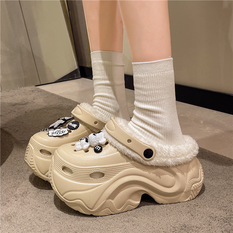 가을과 겨울 여성 기모 두꺼운 실내 홈 웨어러블 방수 미끄럼 방지 귀여운 내마모성 따뜻한 코튼 신발 구멍 신발스토어 가기