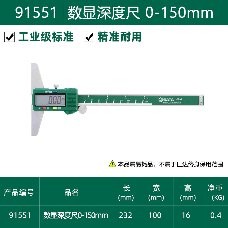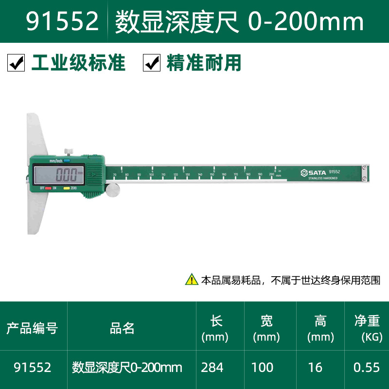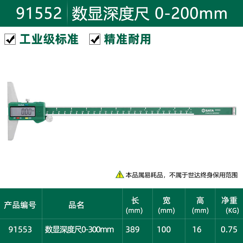 Shida 산업 디지털 깊이 게이지 0-300mm 고정밀 버니어 캘리퍼 91551 91552 91553