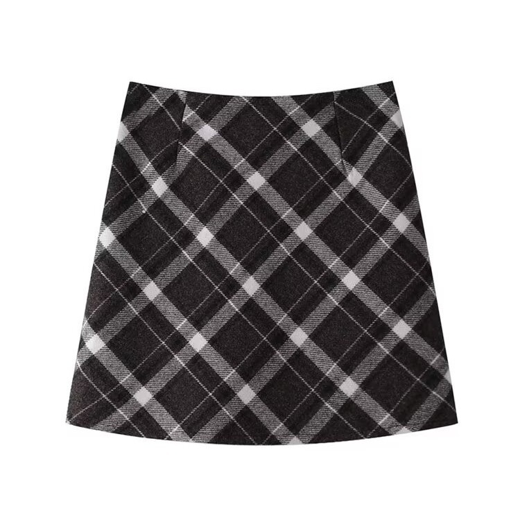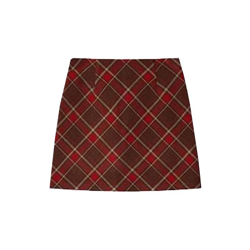 작은 격자 무늬 스커트 여성의 2024 가을 및 겨울 격자 무늬 A-라인 스커트 짧은 치마 플러스 사이즈 높은 허리 슬리밍 모직 스커트스토어 가기