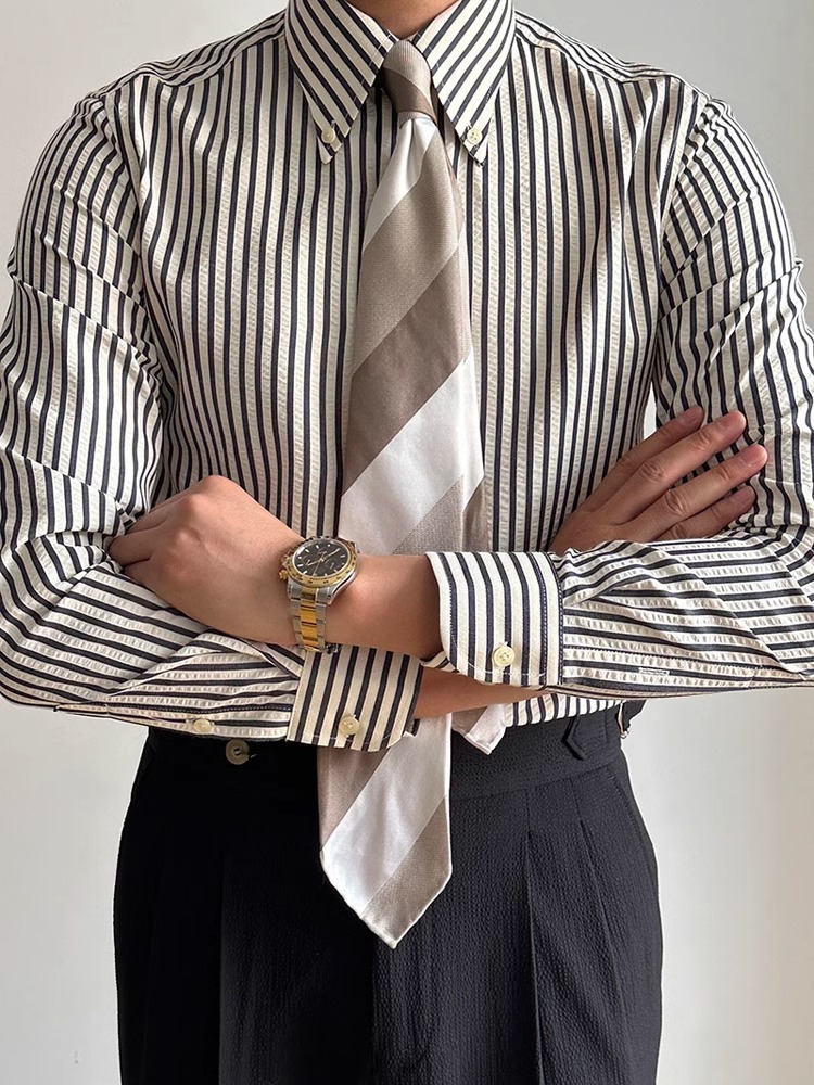 한국 줄무늬 셔츠 남자 긴팔 하이 엔드 영국 Yuppie 남자 라이트 성숙한 스타일 이너 셔츠 재킷 트렌디 브랜드스토어 가기
