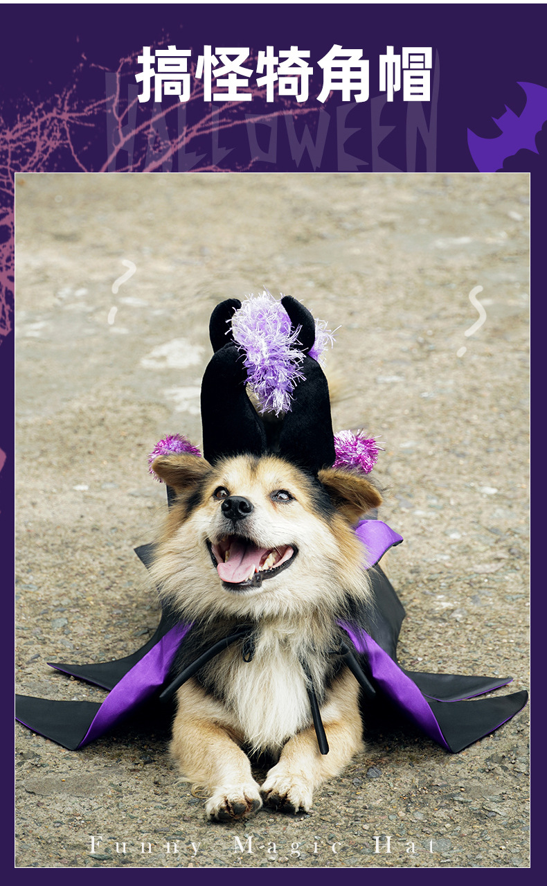 지자이 할로윈 애완 동물 고양이 개 악마 케이프 혼 모자 세트 귀여운 애완 동물 코스프레 코스 의상스토어 가기