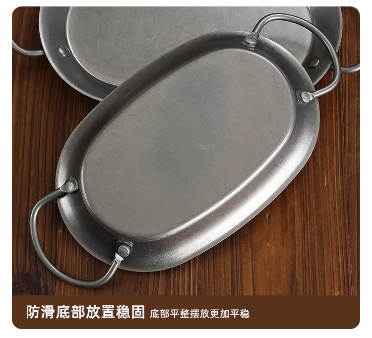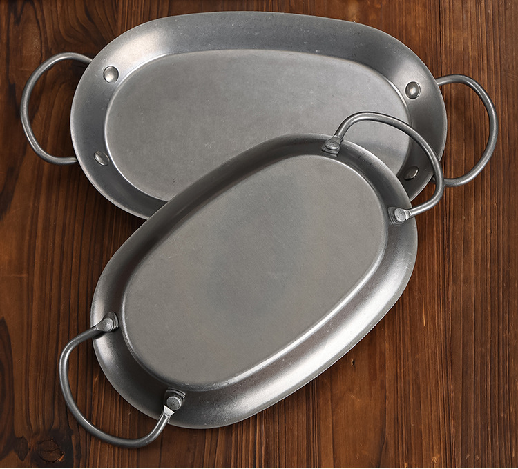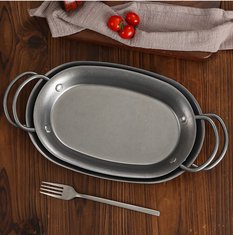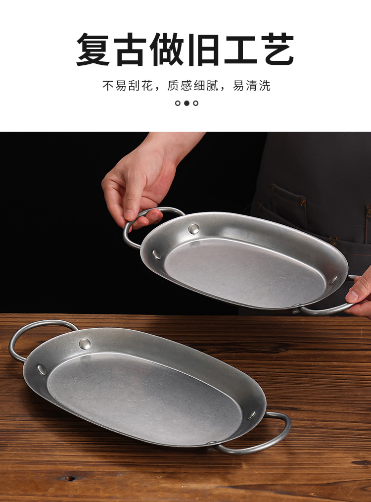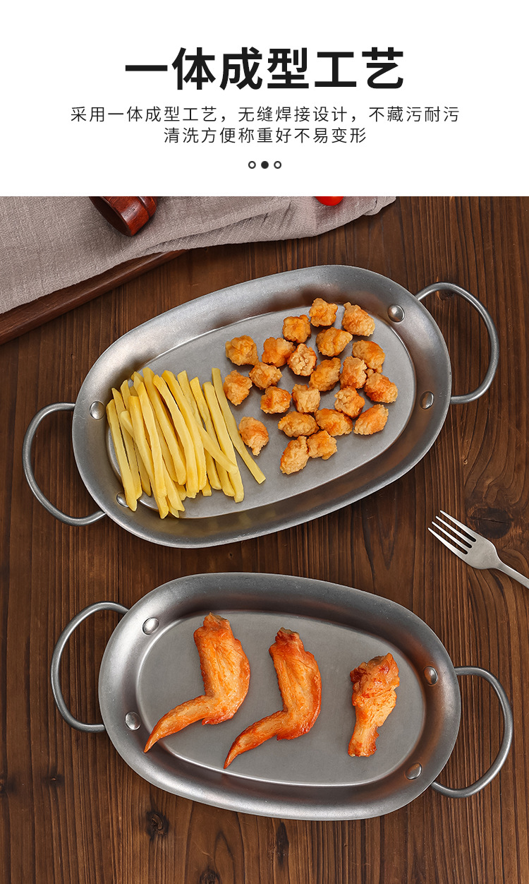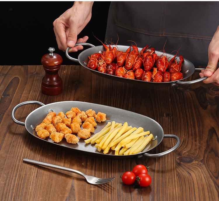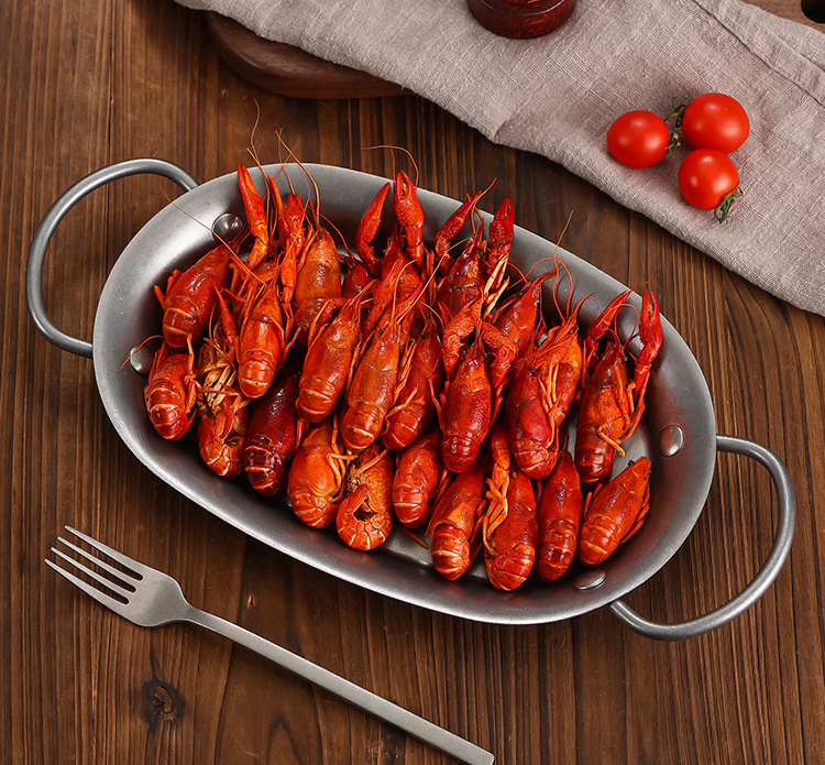 빈티지 타원형 바 비스트로 바베큐 식기 랍스터 치즈 웨스턴 스테인레스 스틸 프라이드 레몬 피쉬 플레이트