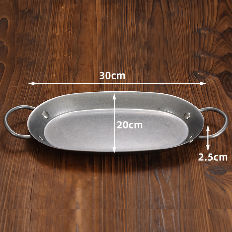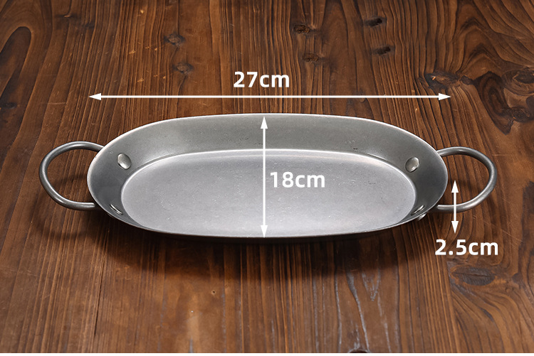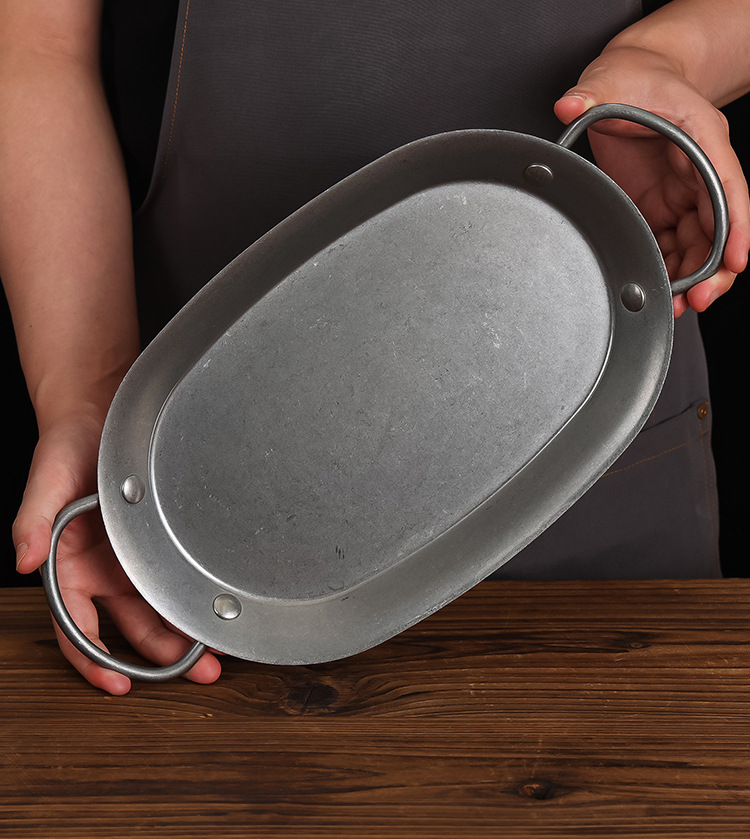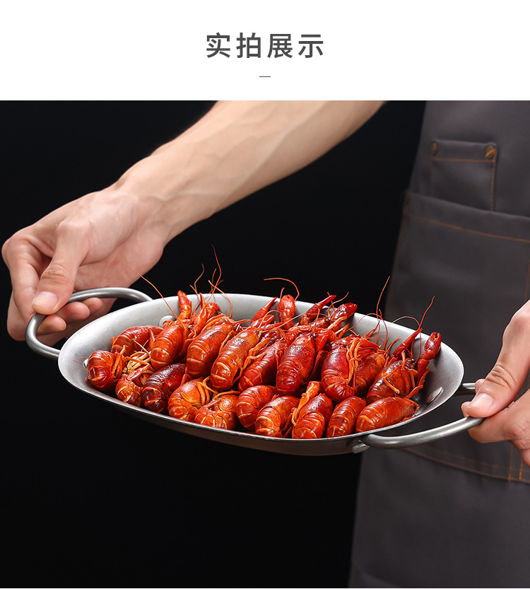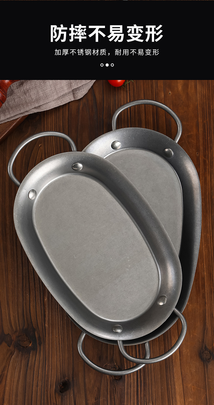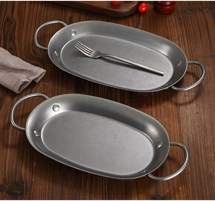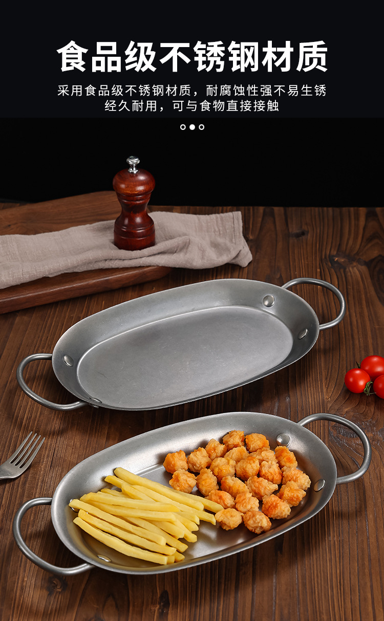 빈티지 타원형 바 비스트로 바베큐 식기 랍스터 치즈 웨스턴 스테인레스 스틸 프라이드 레몬 피쉬 플레이트