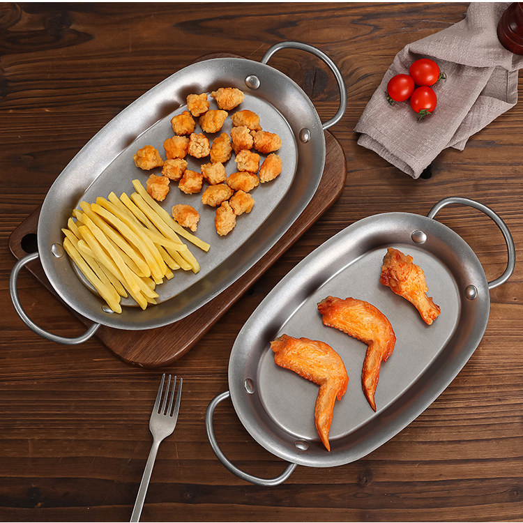 빈티지 타원형 바 비스트로 바베큐 식기 랍스터 치즈 웨스턴 스테인레스 스틸 프라이드 레몬 피쉬 플레이트스토어 가기