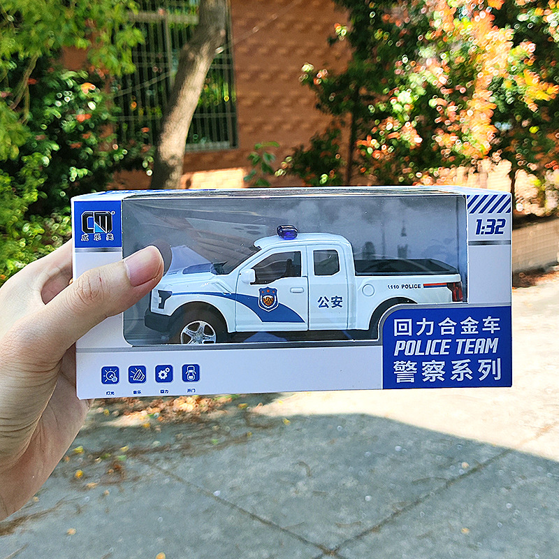 • 도어 개폐형 합금 화이트 픽업 경찰차 [합금 본체, 음향 효과 및 조명 포함]