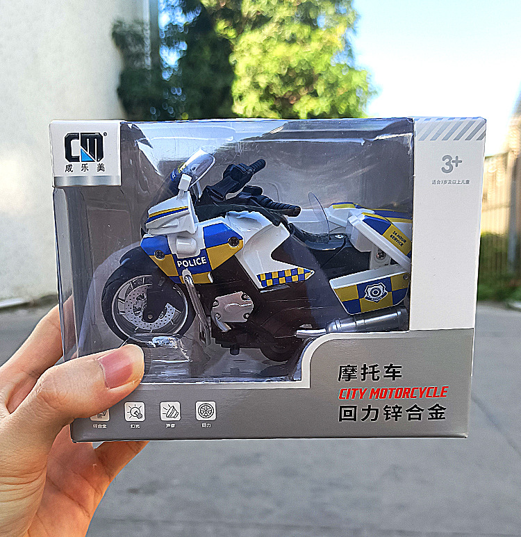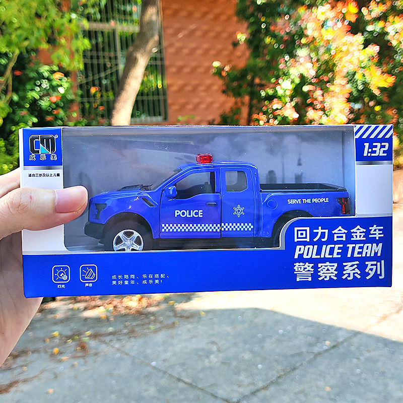 • 문을 열고 뒤로 밀 수 있는 합금 파란색 픽업 경찰차 [합금 본체, 음향 효과 및 조명 포함]
