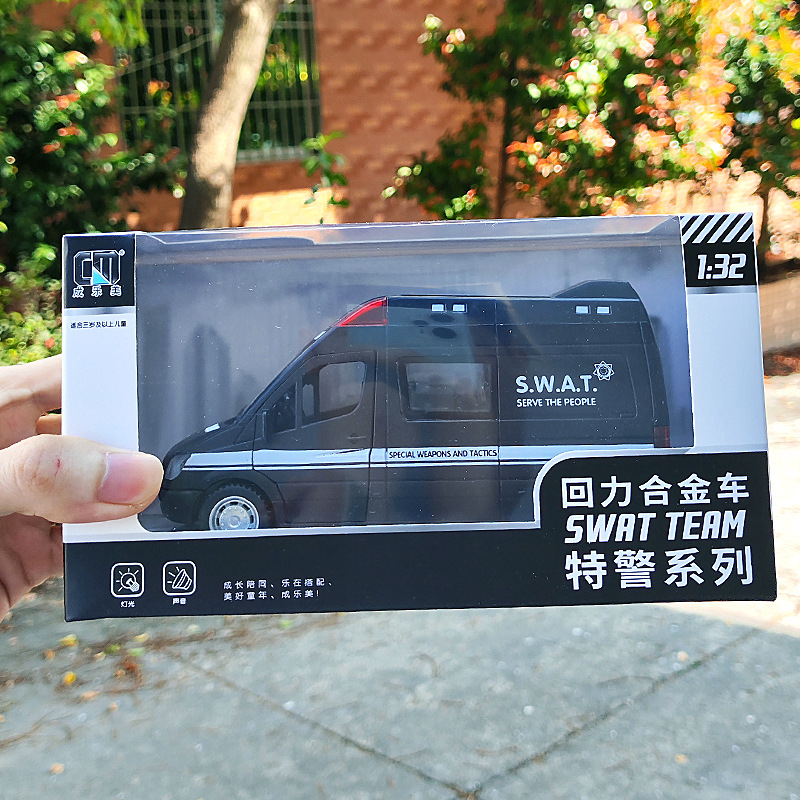 • 문을 열 수 있는 합금 풀백 SWAT 차량 [합금 본체, 음향 효과 및 조명 포함]