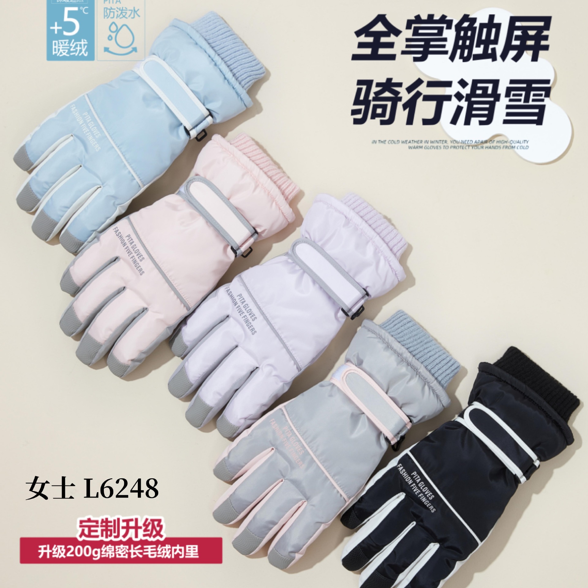 2024 년 스키 장갑 여성의 겨울 발수 기모 두꺼운 따뜻한 방풍 차가운 승마 장갑 도매스토어 가기