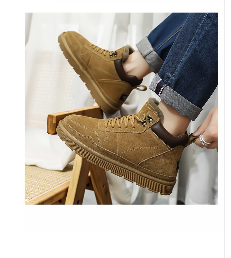 2024 새로운 두꺼운 미끄럼 방지 짧은 튜브 빵 신발 스노우 부츠 겨울 기모 따뜻한 코튼 신발 캐주얼 신발 보드 신발