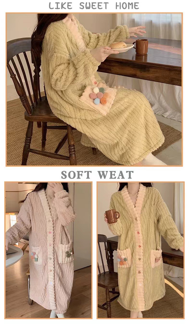 여성용 레인보우 잠옷, 겨울 산호 벨벳, 루즈하고 따뜻하며 두꺼운 긴 잠옷, 달콤한 가디건, 홈웨어, 야외에서 착용 가능스토어 가기