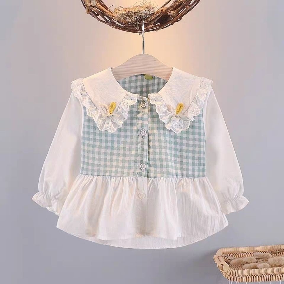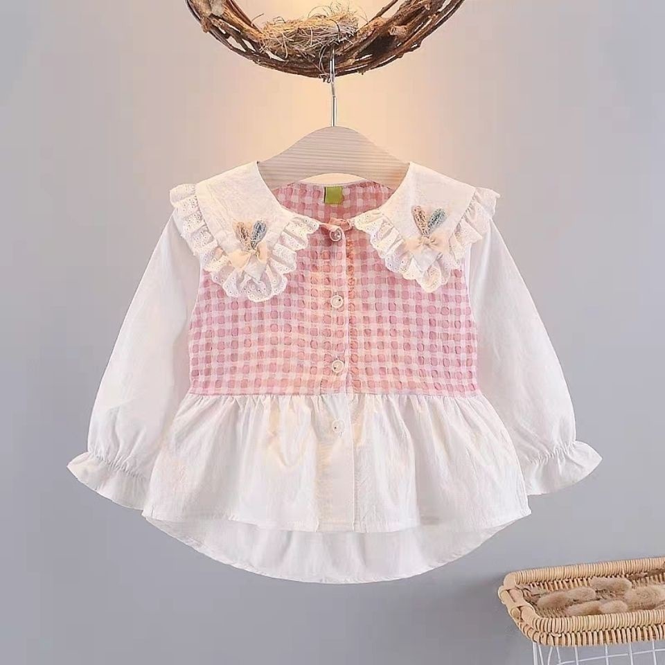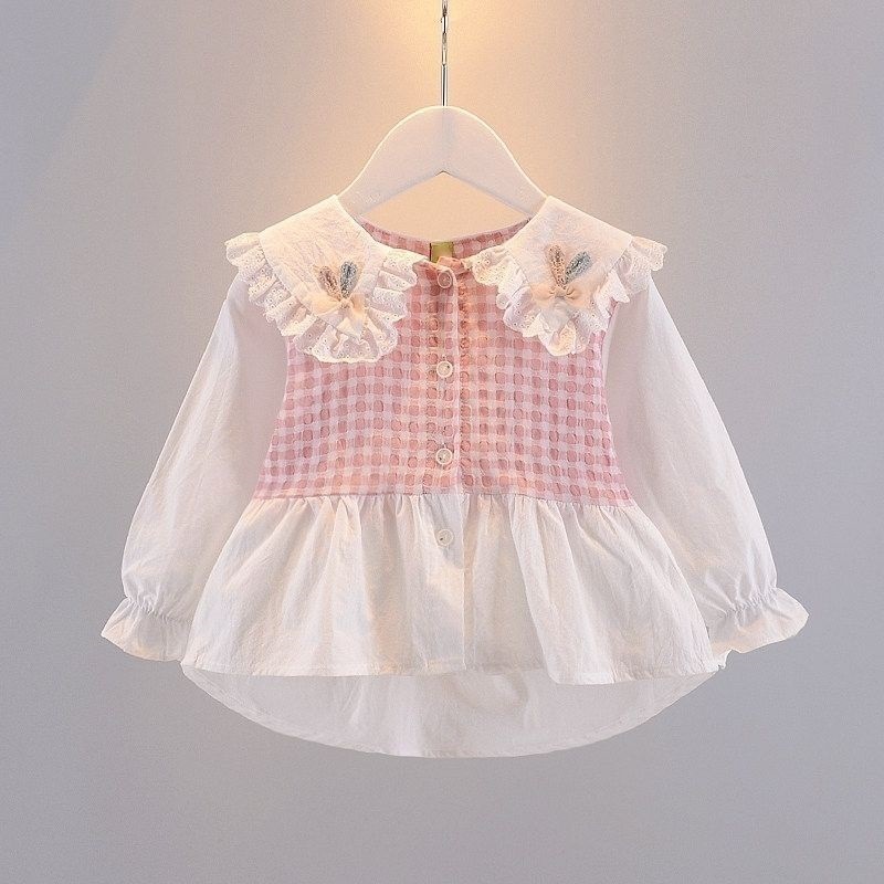 소녀의 인형 셔츠 봄 새로운 가짜 투피스 셔츠 어린이 셔츠 긴팔 세련된 아기 소녀 어린 소녀