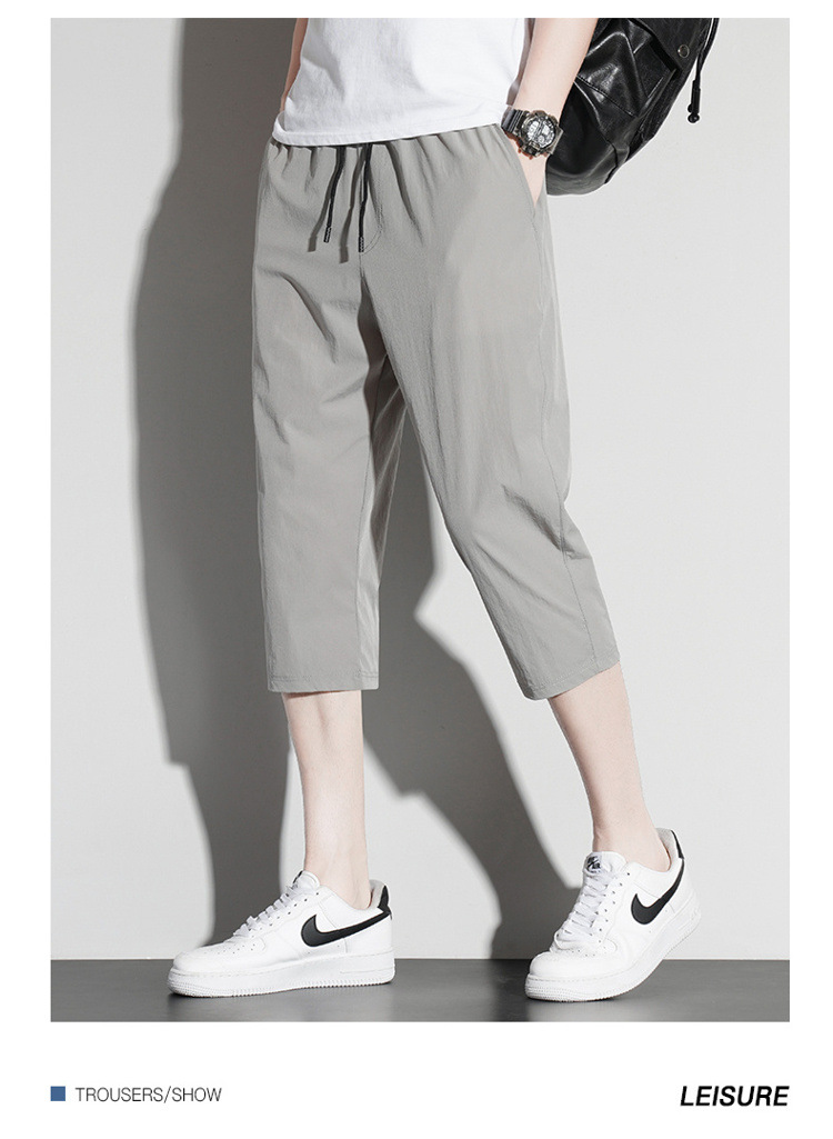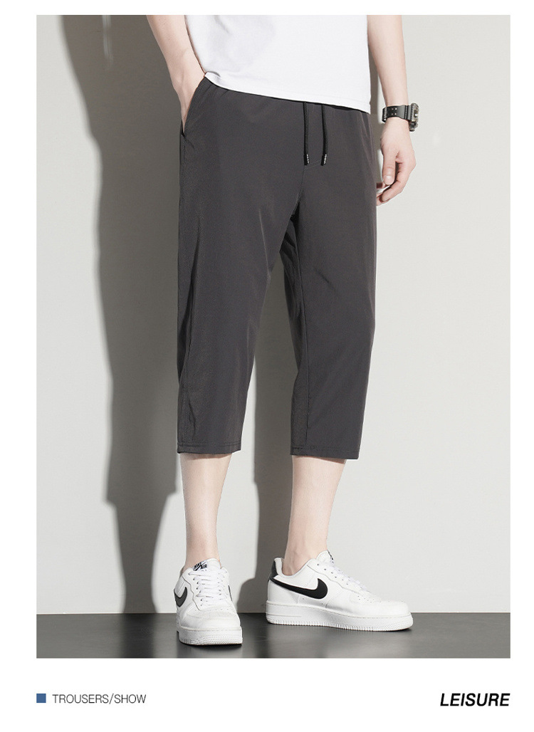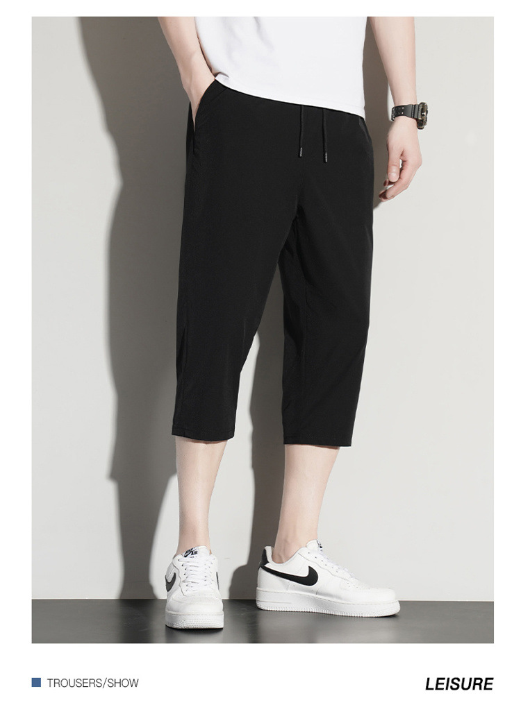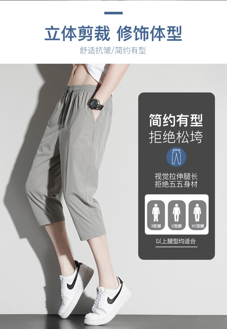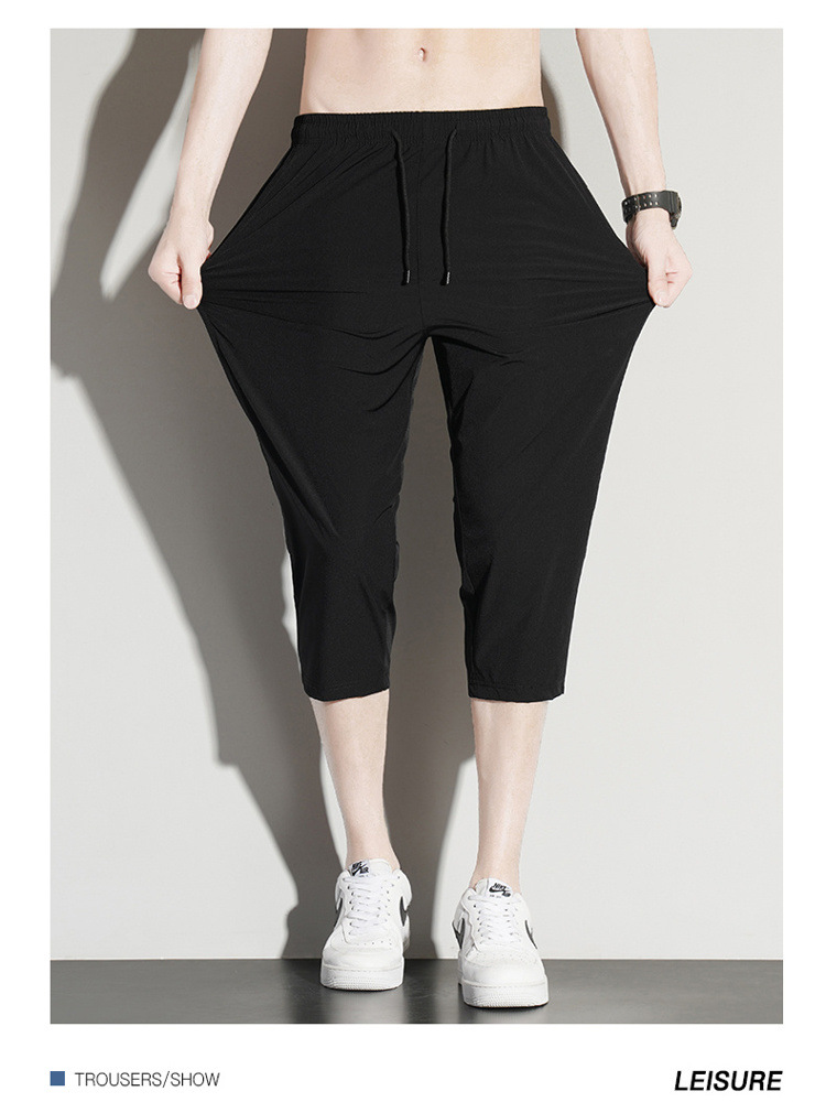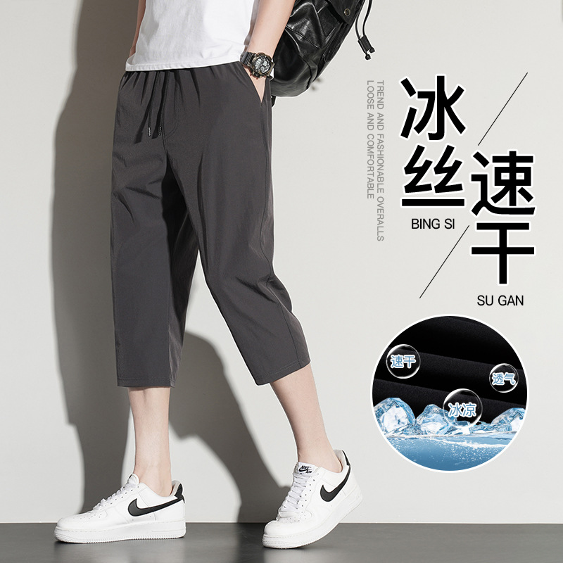 아이스 실크 카프리 바지 남자 여름 얇은 테이퍼 좁은 버전 스트레이트 바지 무릎 건조 퀵 플러스 사이즈 카프리 바지