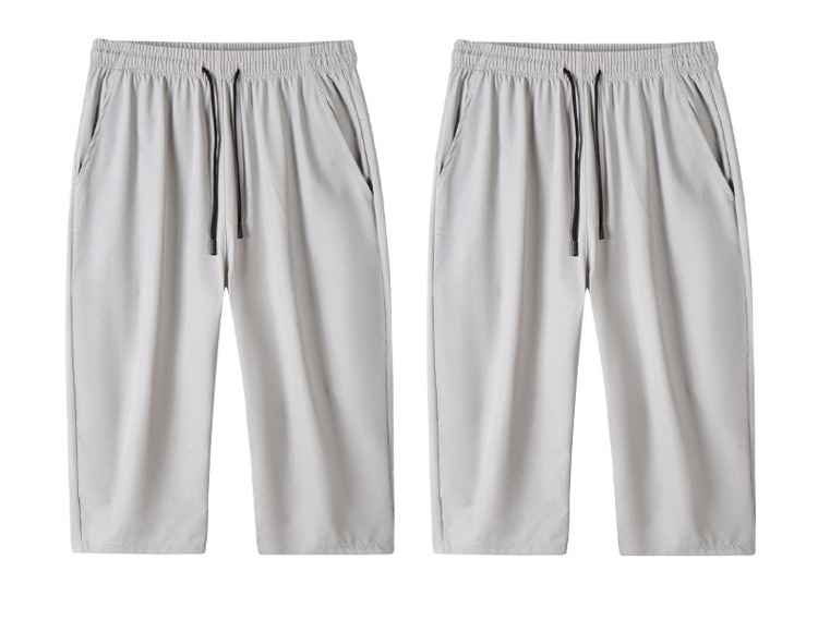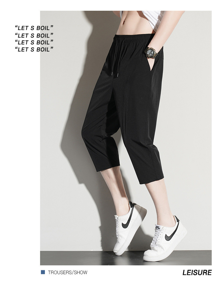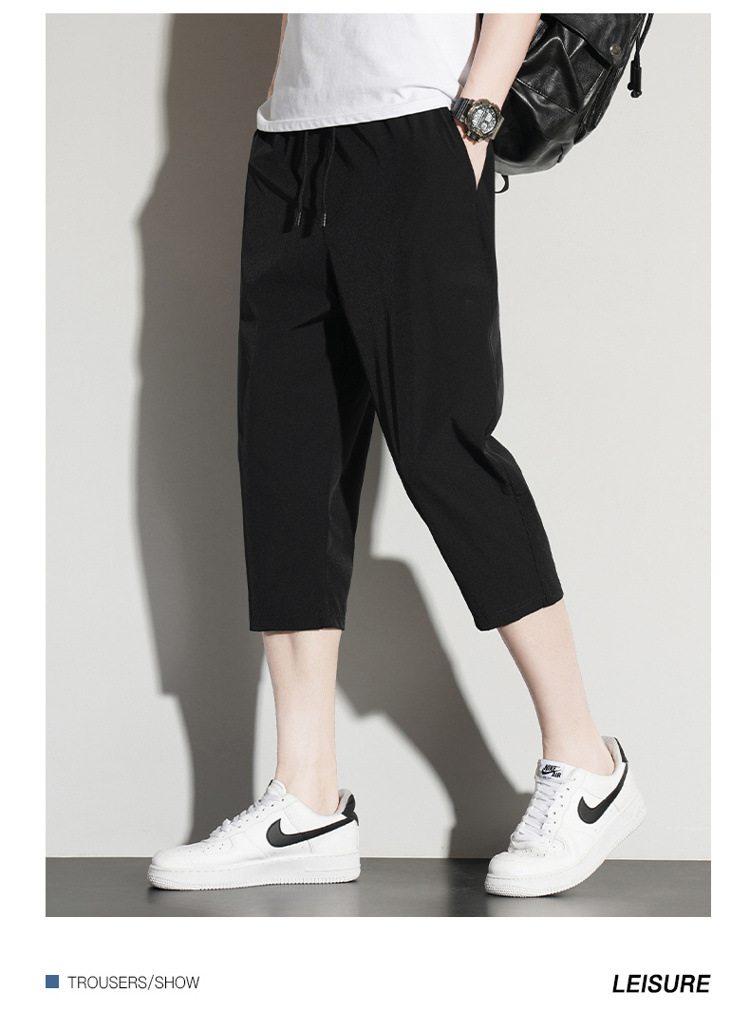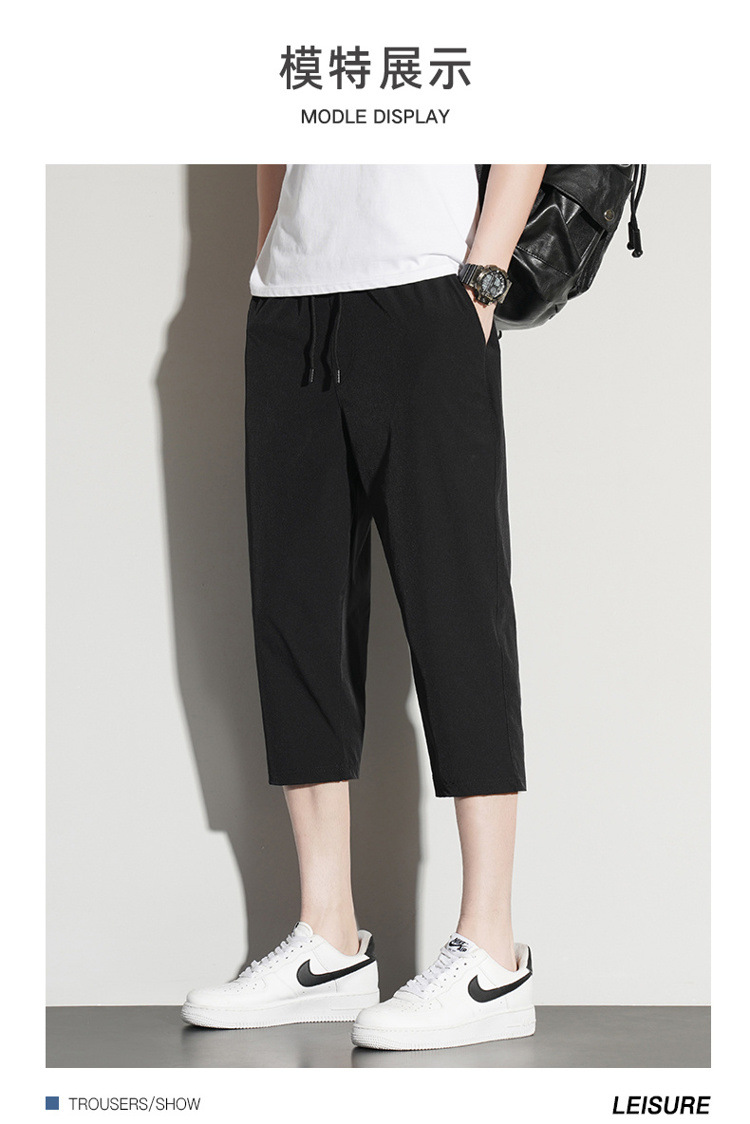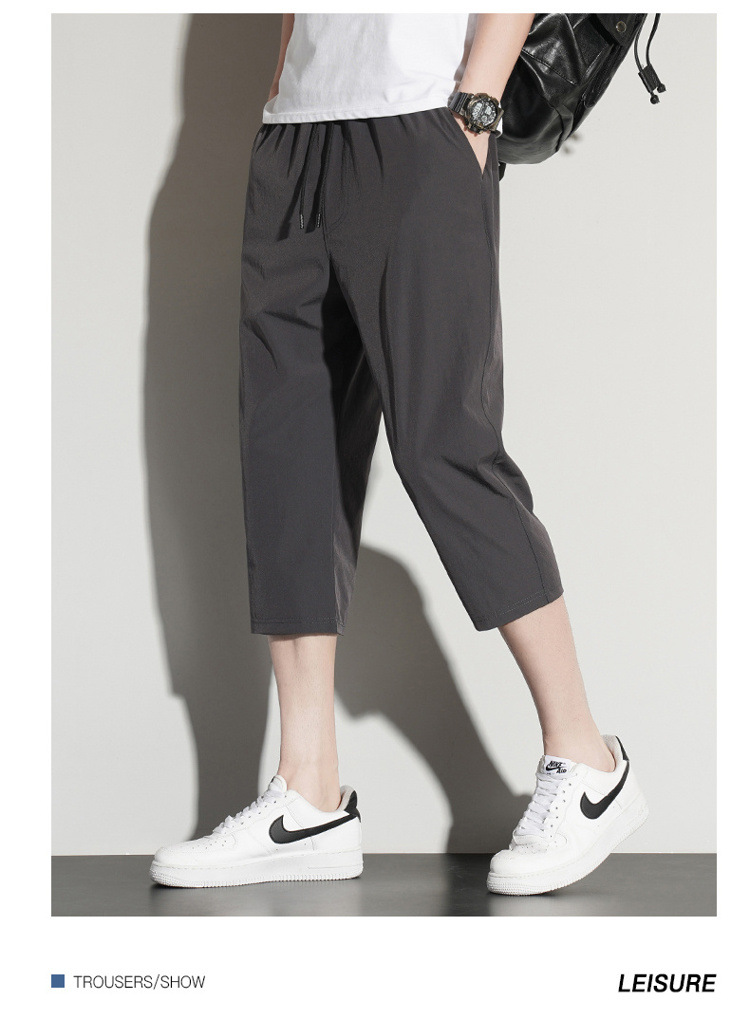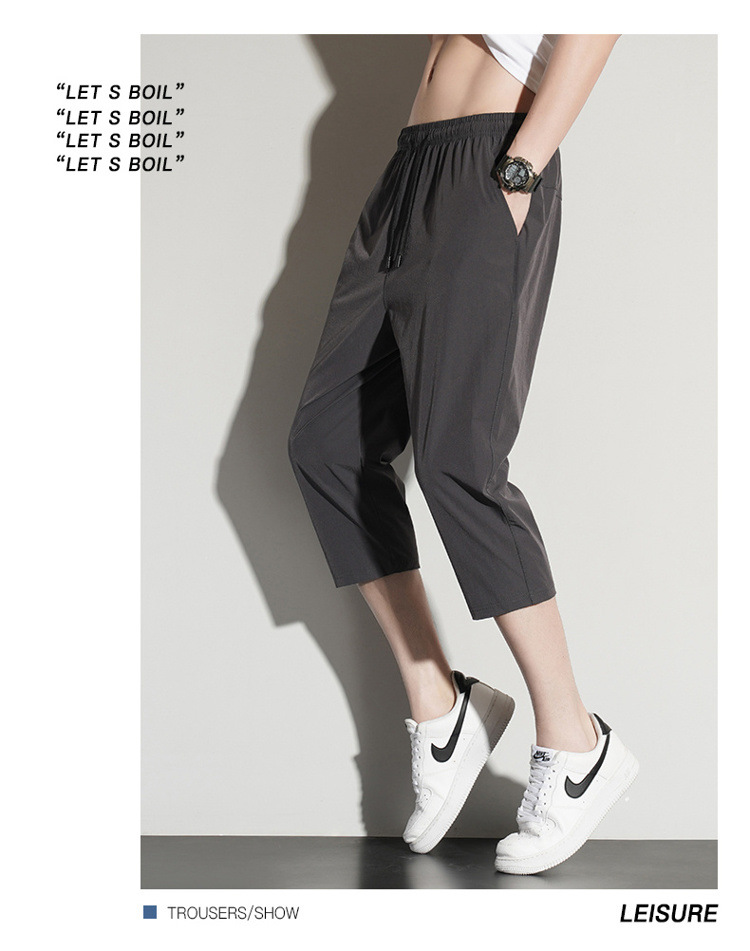 아이스 실크 카프리 바지 남자 여름 얇은 테이퍼 좁은 버전 스트레이트 바지 무릎 건조 퀵 플러스 사이즈 카프리 바지