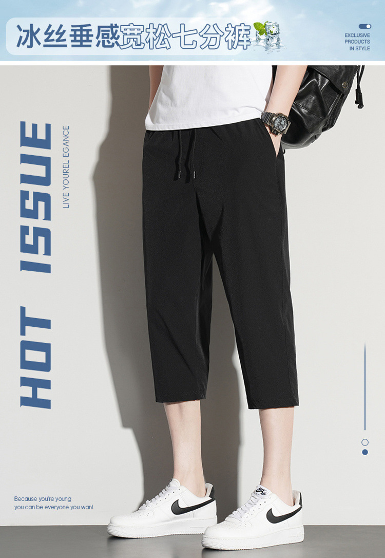 아이스 실크 카프리 바지 남자 여름 얇은 테이퍼 좁은 버전 스트레이트 바지 무릎 건조 퀵 플러스 사이즈 카프리 바지스토어 가기