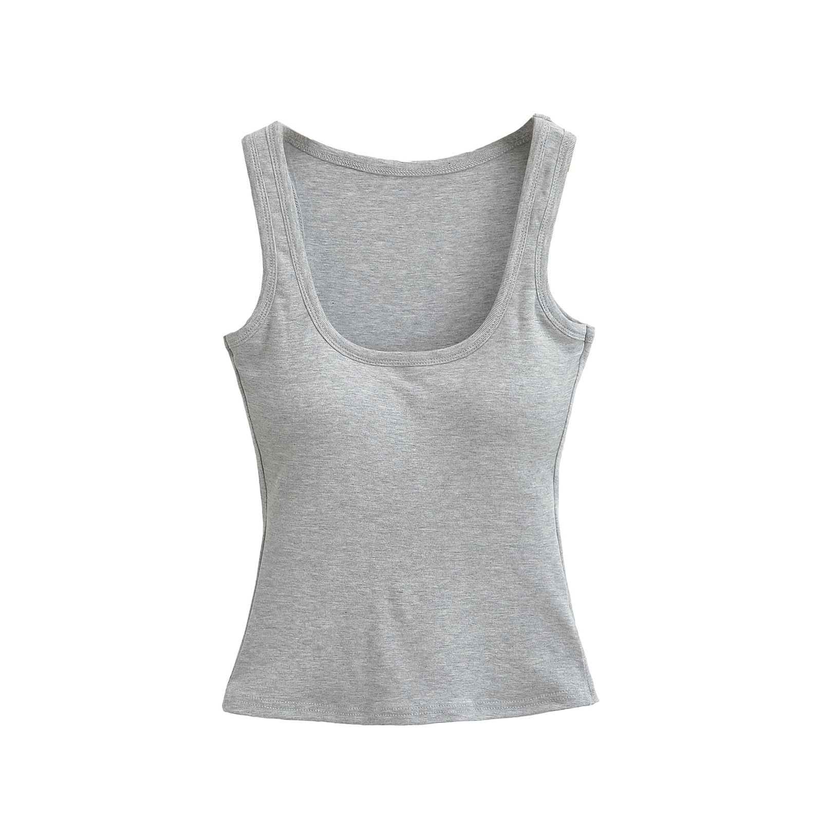 7433-유럽과 미국 스타일의 핫 소녀 U-넥 민소매 조끼 여성 2024 가을 새로운 타이트 섹시한 슬림 외부 코트스토어 가기