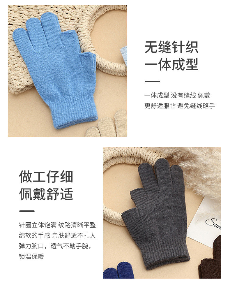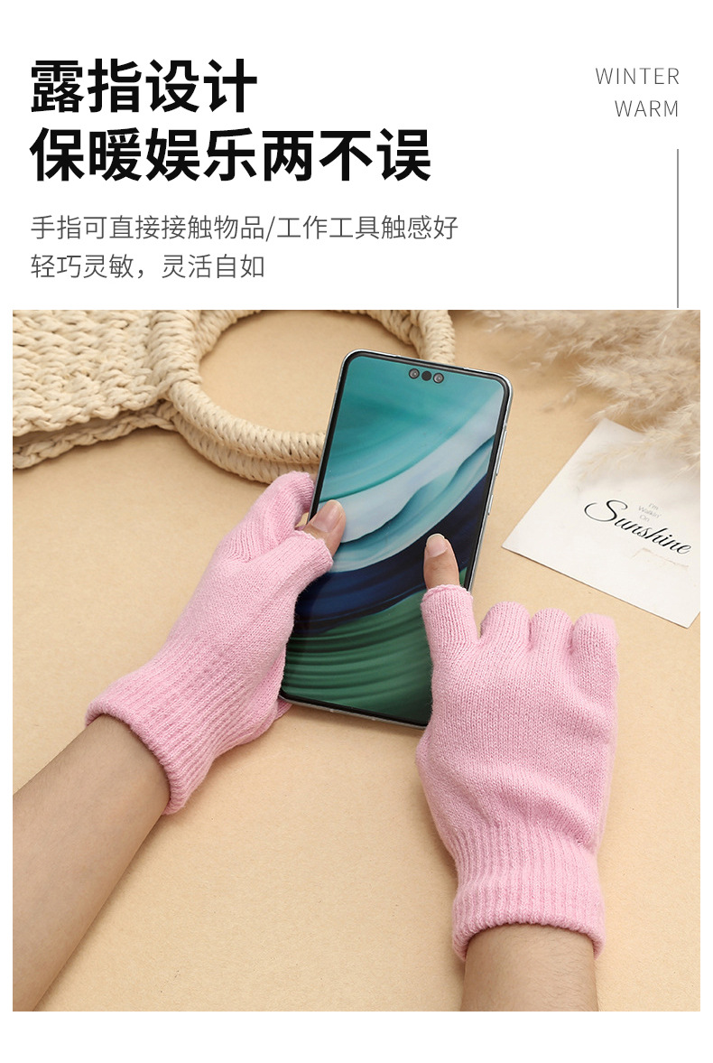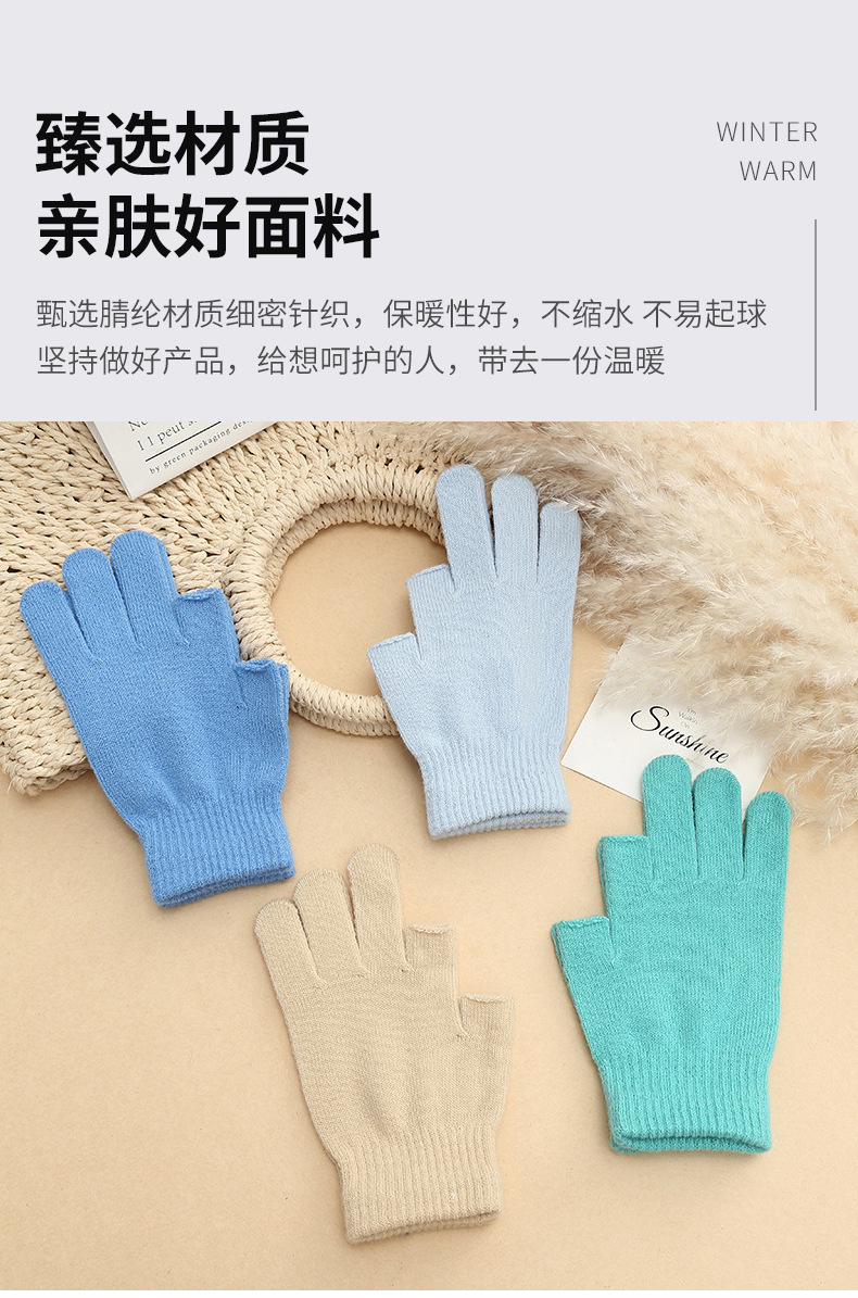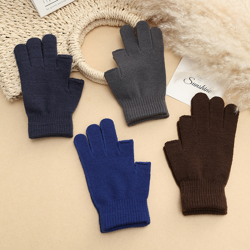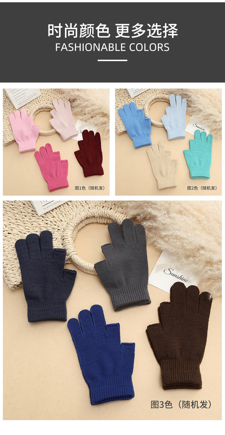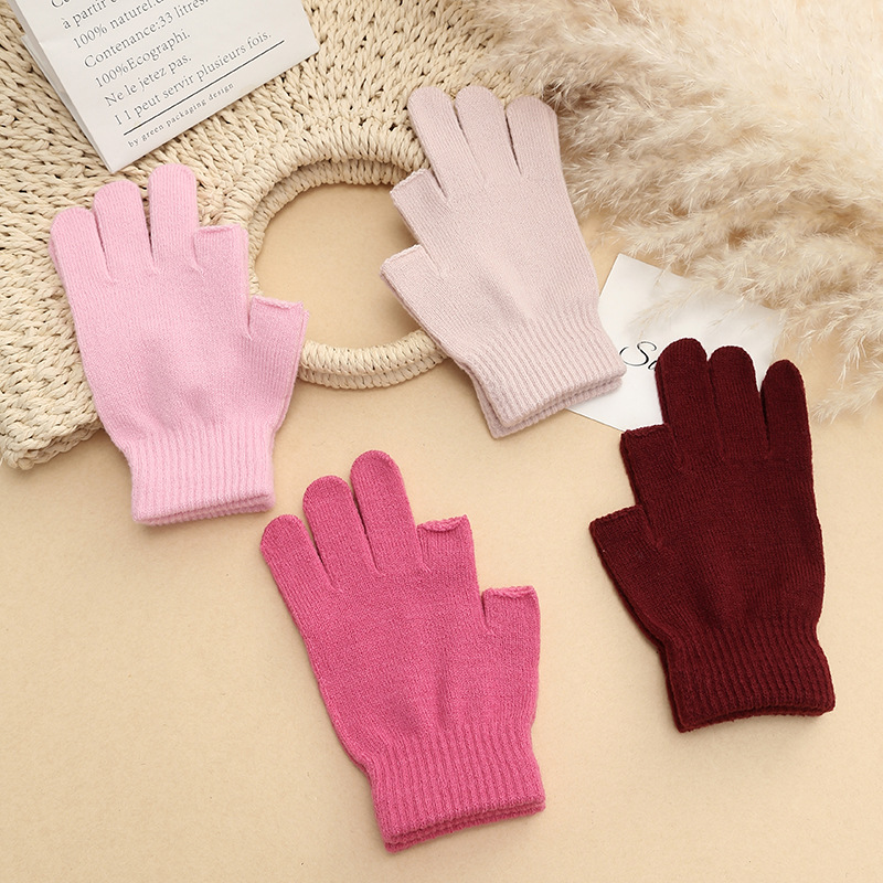 겨울 단색 니트 울 장갑 터치 스크린 반 손가락 따뜻한 장갑 남성과 여성을위한 야외 감기 보호 승마 장갑 도매