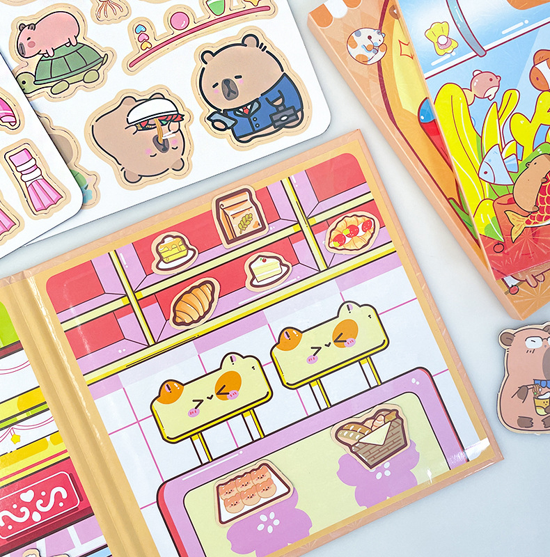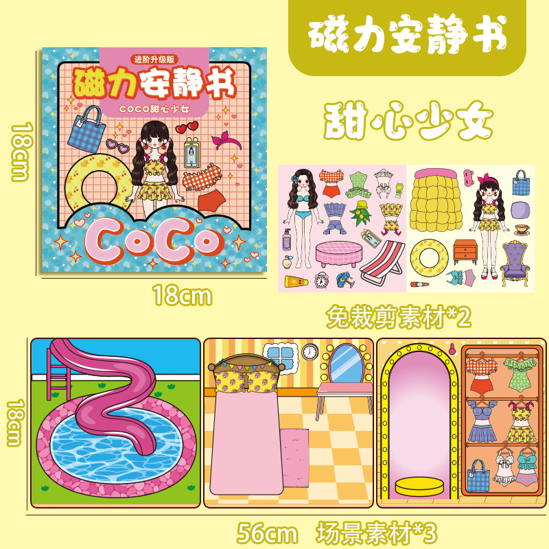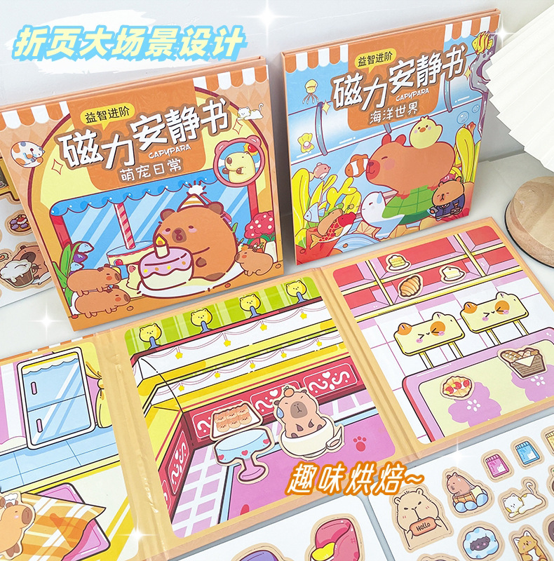 Liou 시리즈 자기 어린이 소녀 조용한 책 큰 책 18cm 자기 장난감 diy 수제 스티커 책 선물스토어 가기