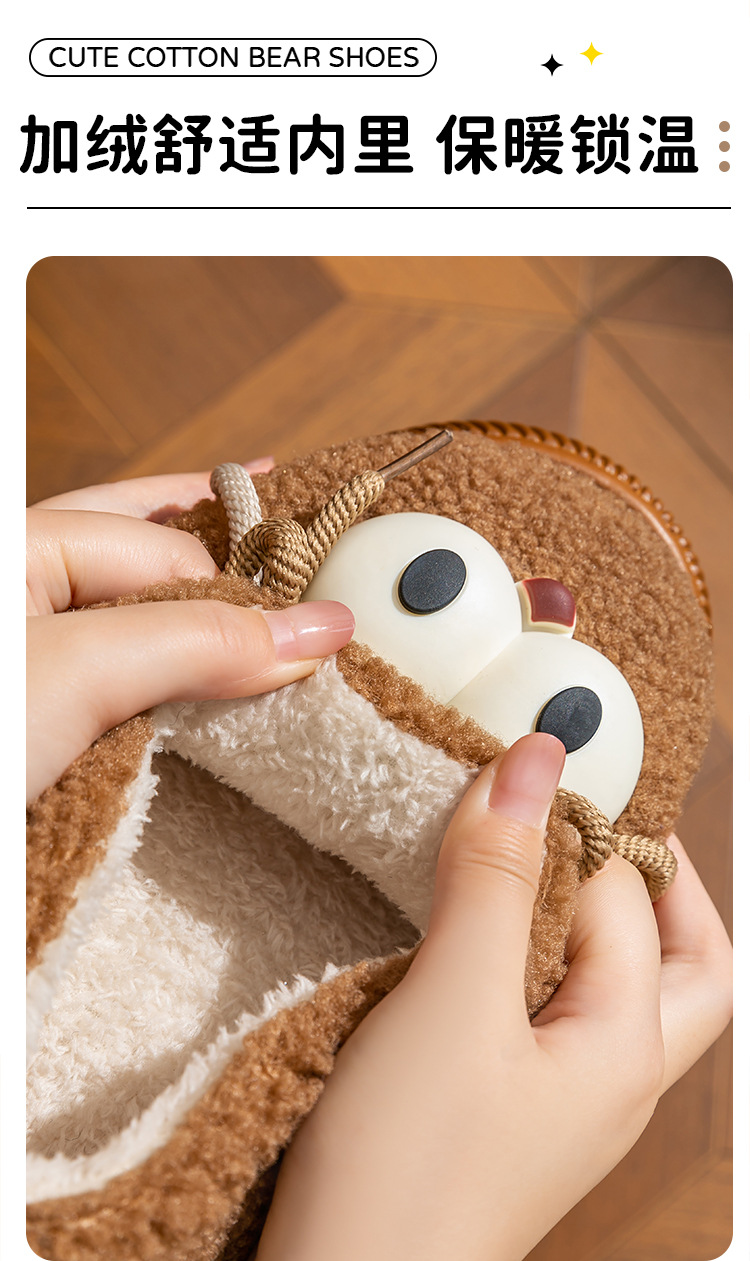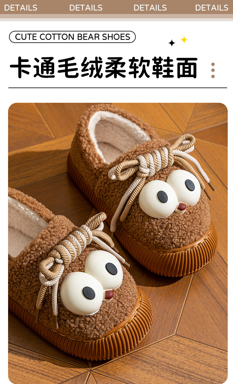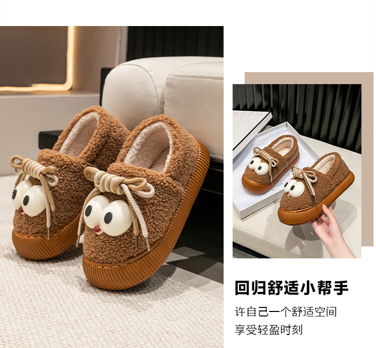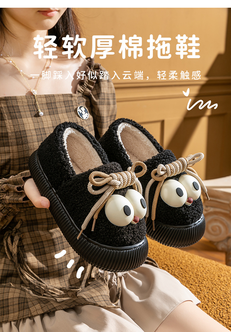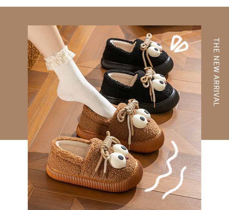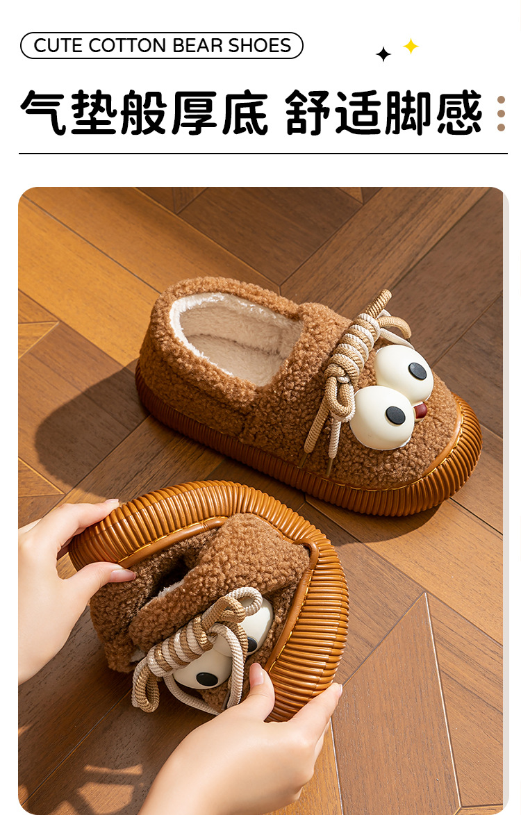 귀여운 코튼 신발 여성의 겨울 2024 새로운 실내 홈 백 힐 따뜻한 기모 플러시 달 신발 가벼운 부드러운 바닥