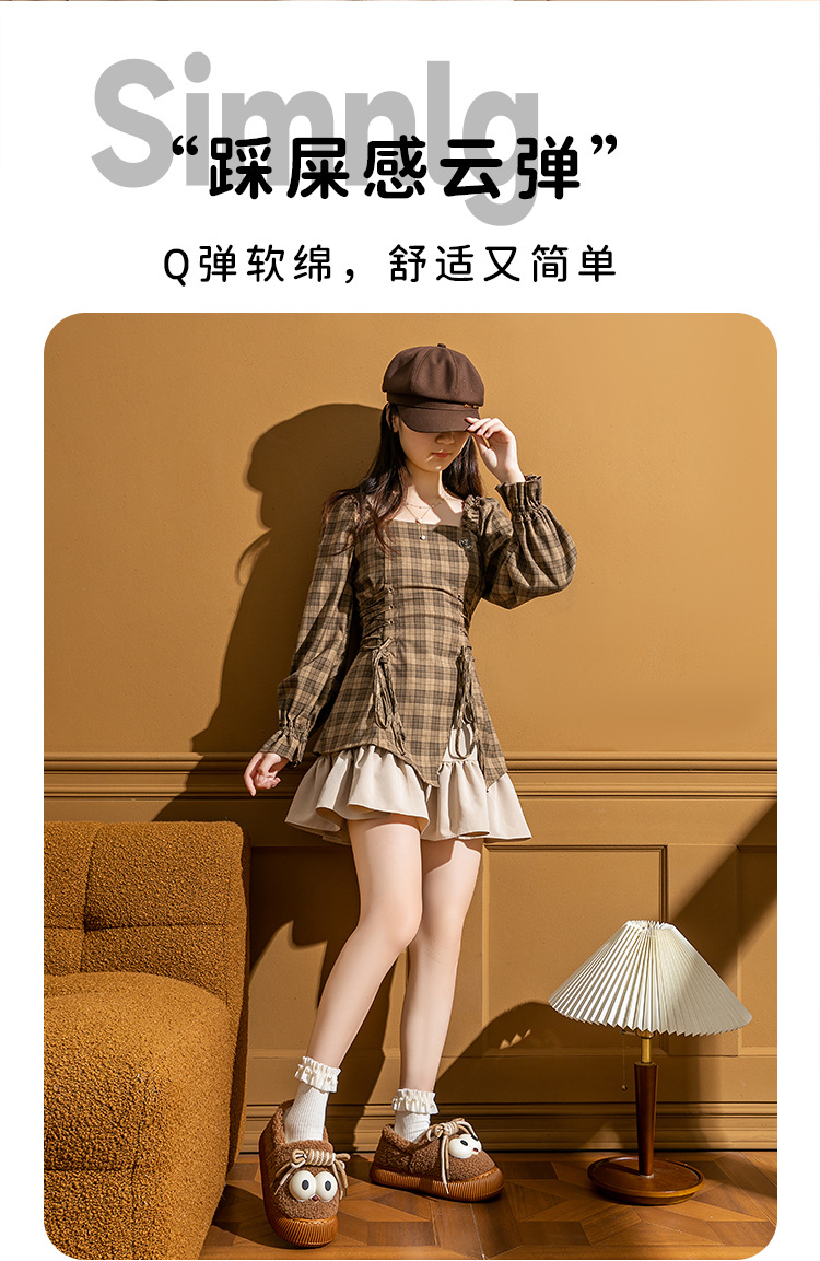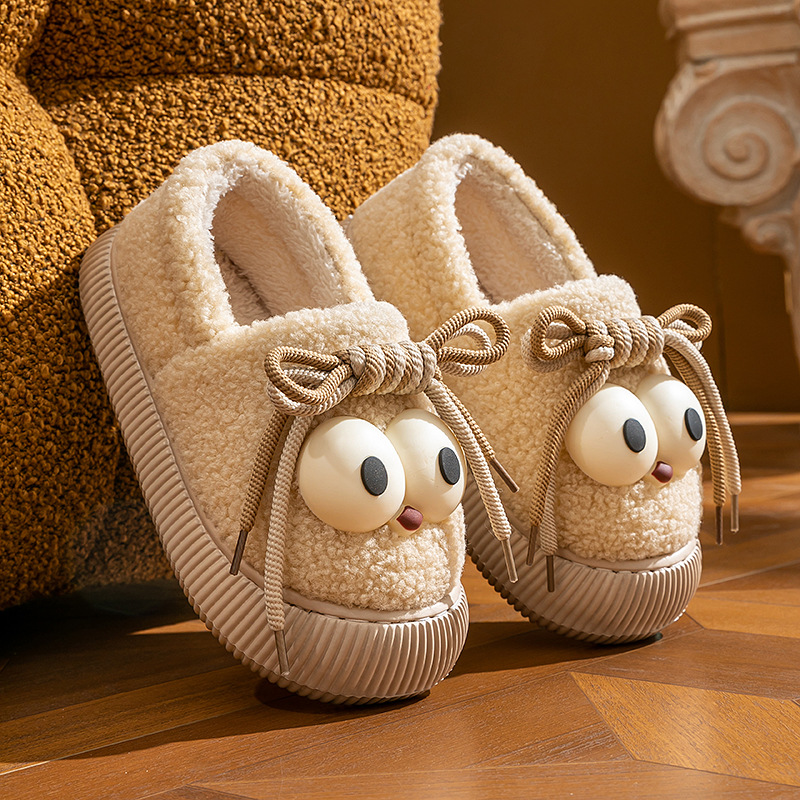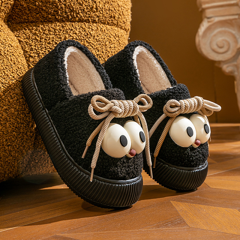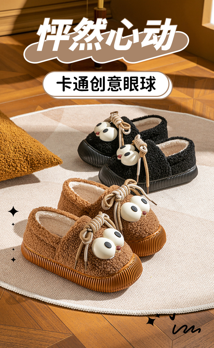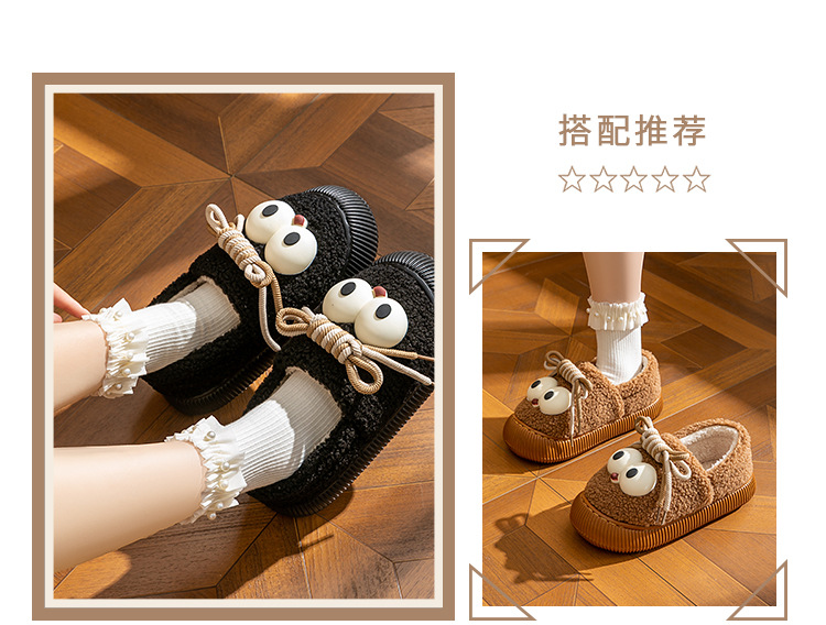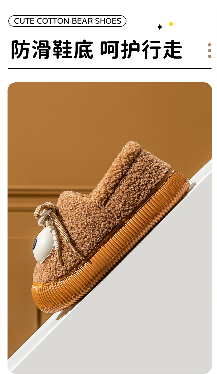 귀여운 코튼 신발 여성의 겨울 2024 새로운 실내 홈 백 힐 따뜻한 기모 플러시 달 신발 가벼운 부드러운 바닥