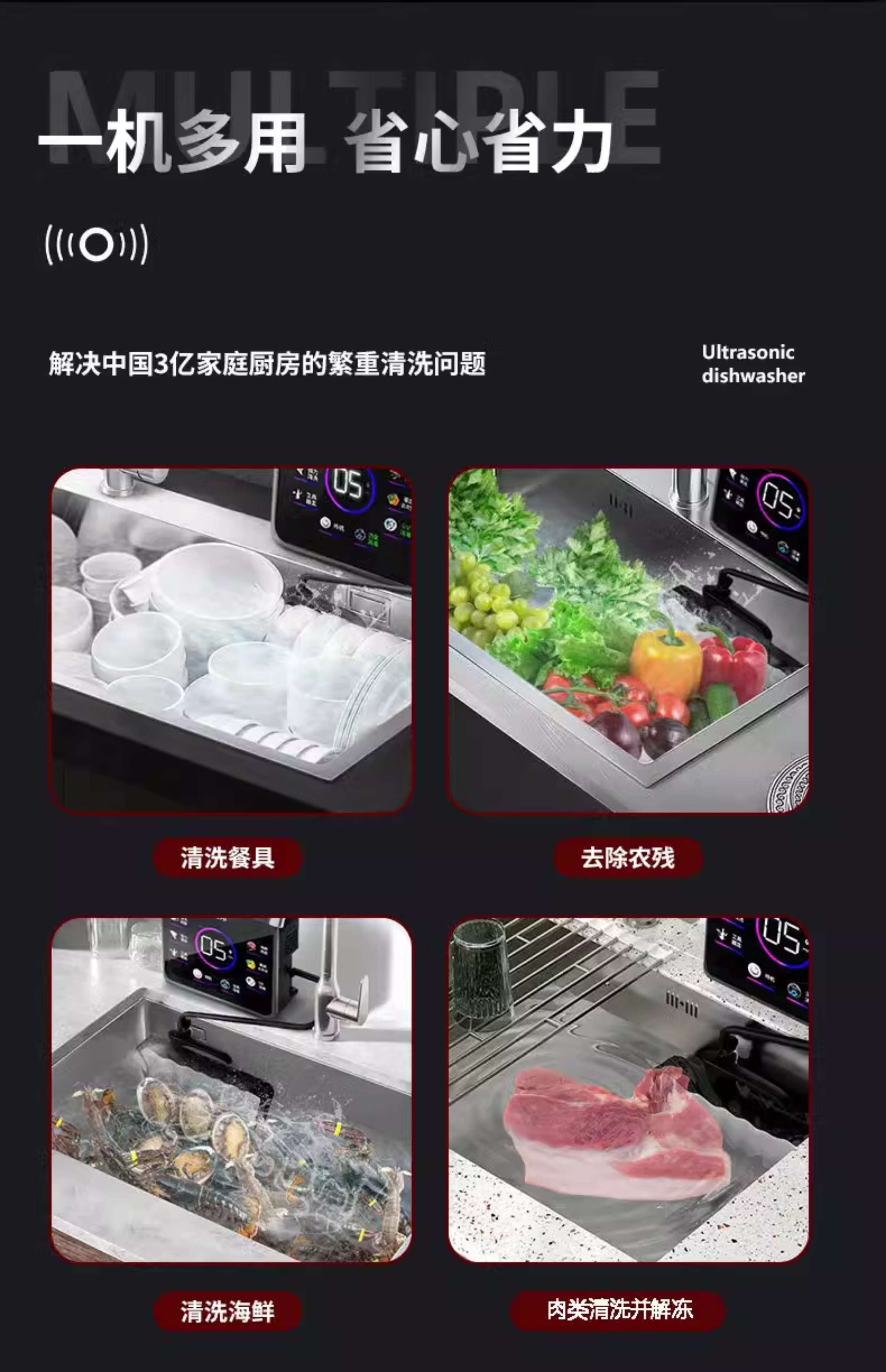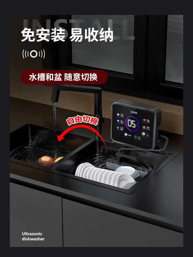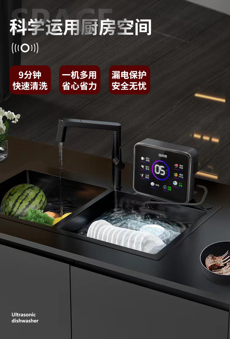 초음파 식기 세척기 설치없는 가정용 싱크대 외부 식품 안티 바이러스 주방 식기 세척 아티팩트스토어 가기