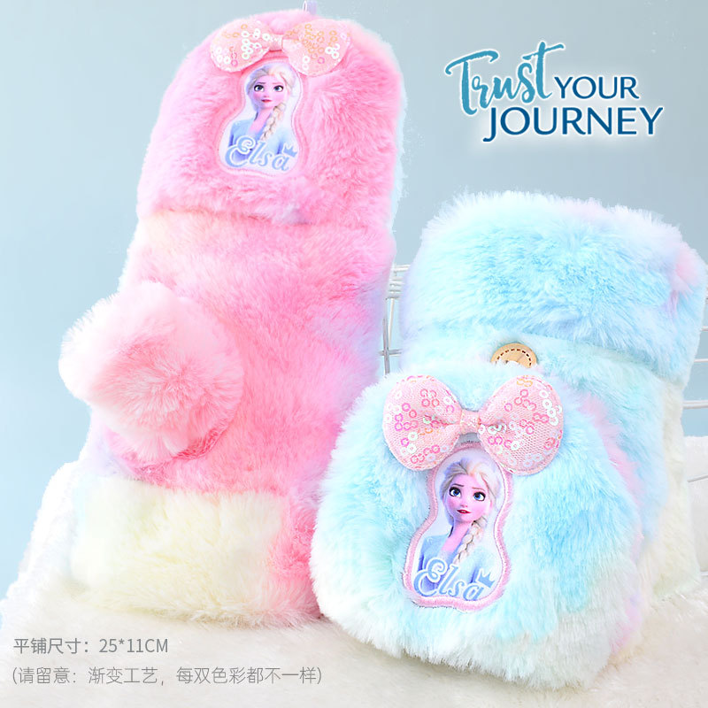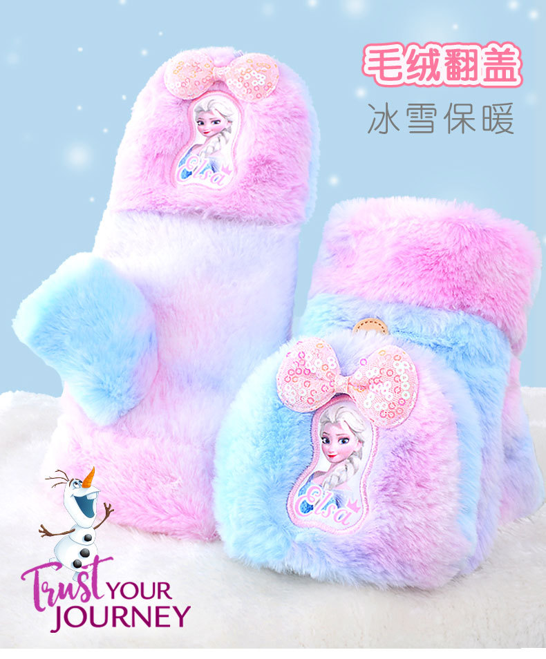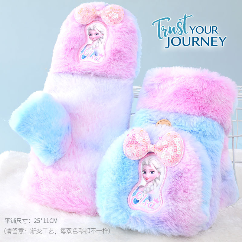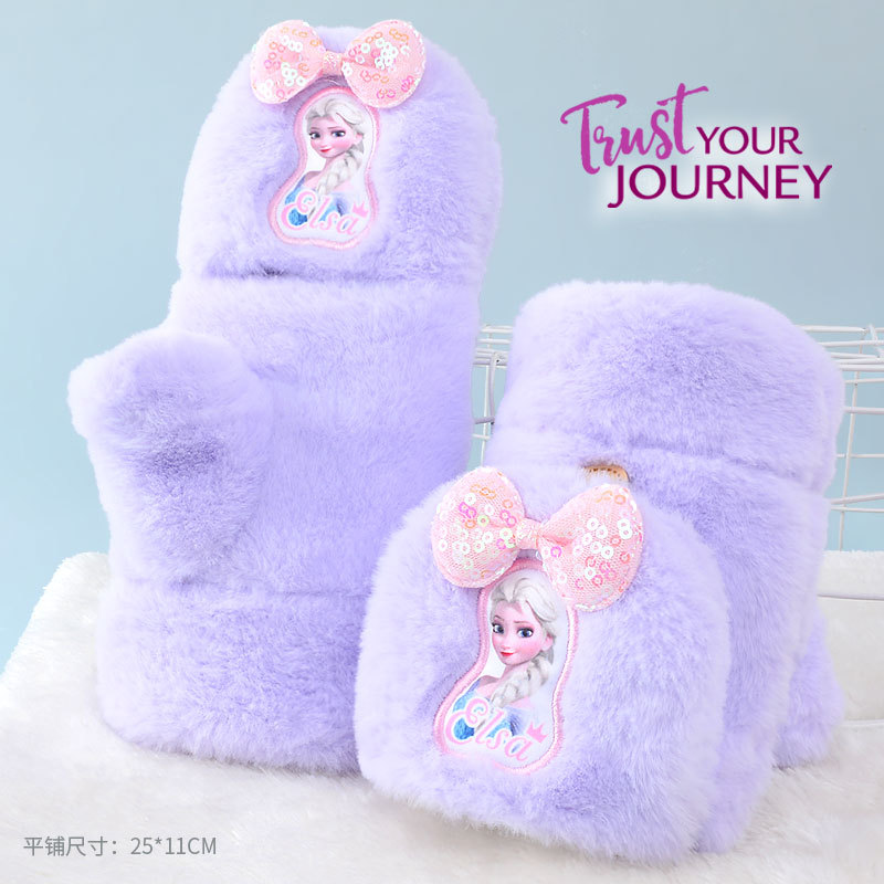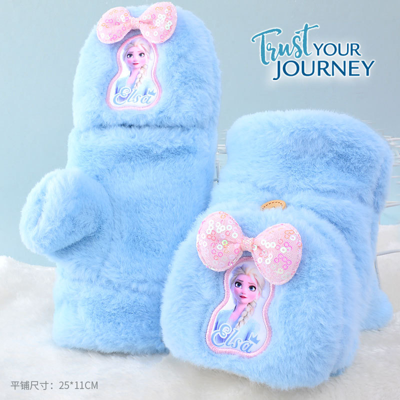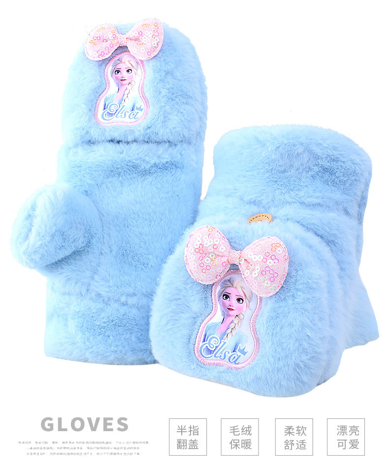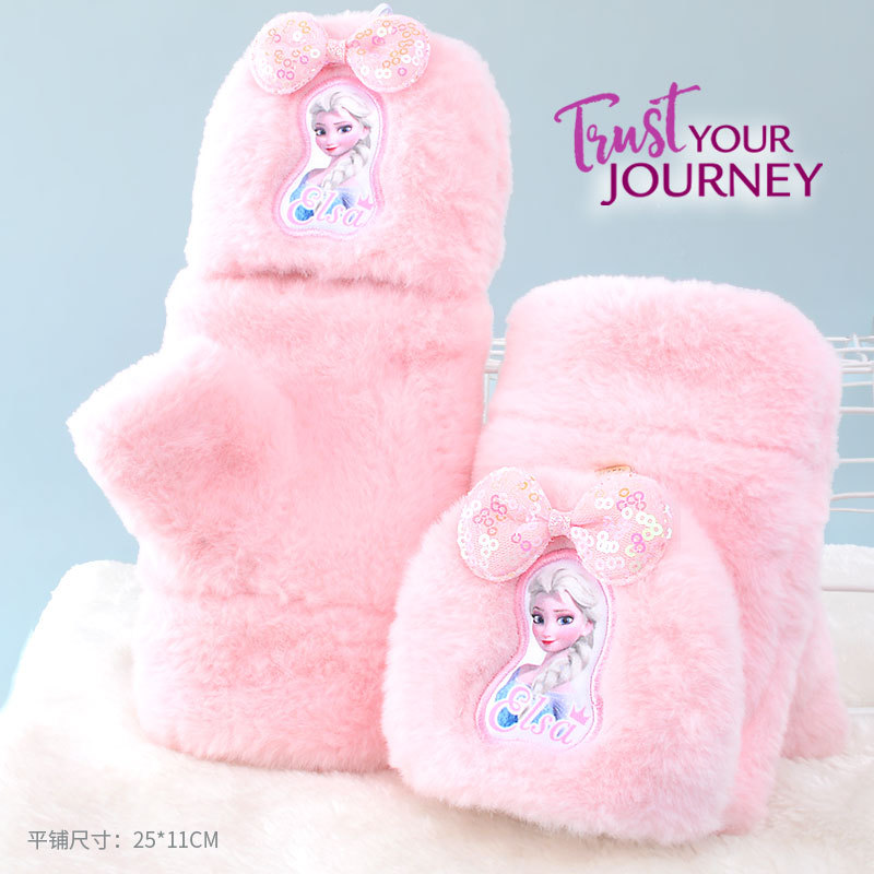 디즈니 어린이 하프 핑거 장갑 겨울 따뜻한 걸스 손가락 노출 봉제 가방 손가락 작은 소녀 플립 두꺼운 기모
