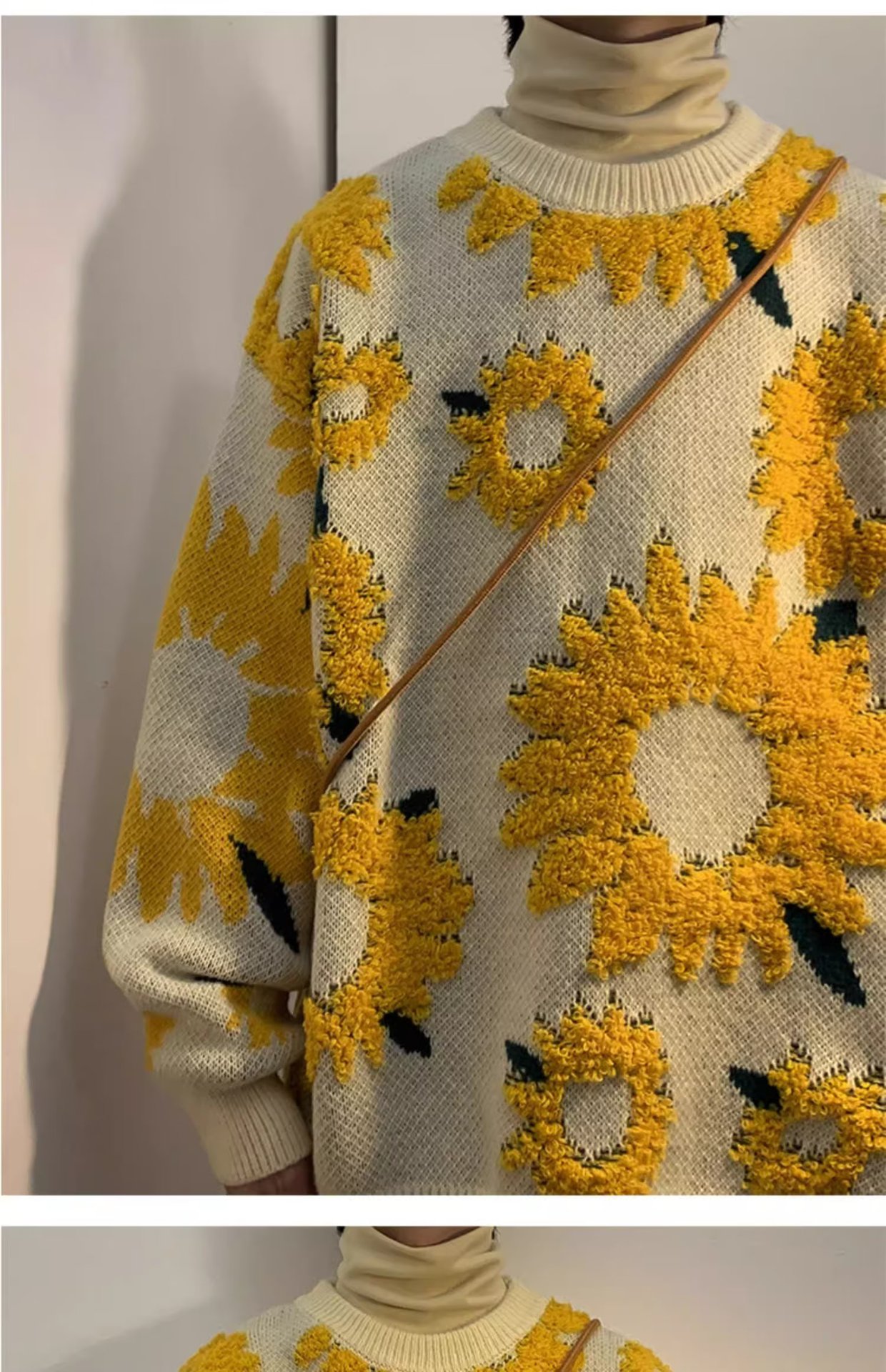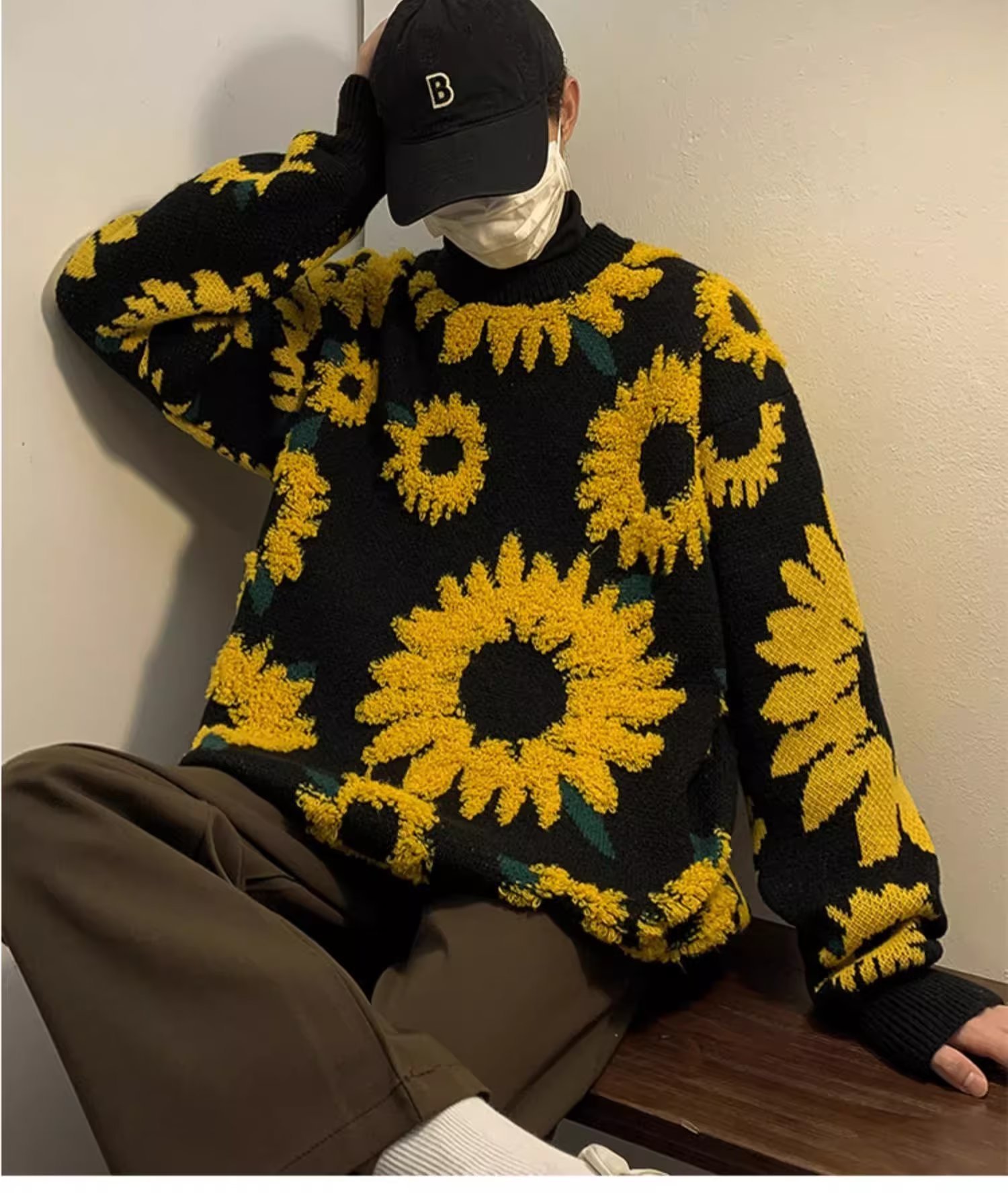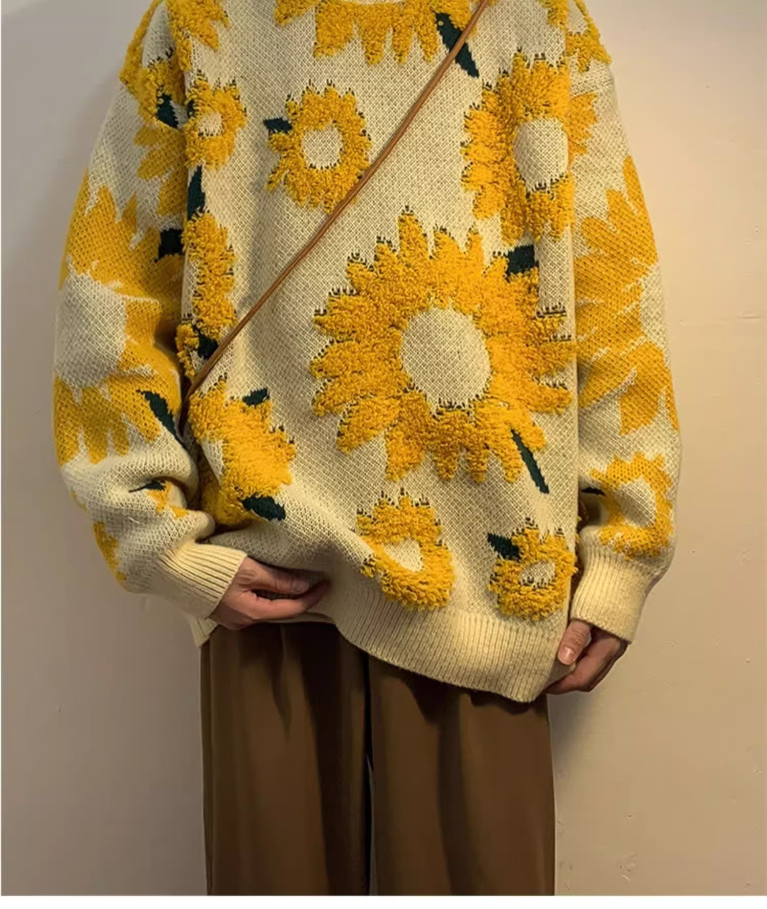 일본 복고풍 국화 자카드 스웨터 남성 가을 유행 브랜드 ins 루즈 라운드 넥 캐주얼 따뜻한 스웨터 재킷스토어 가기