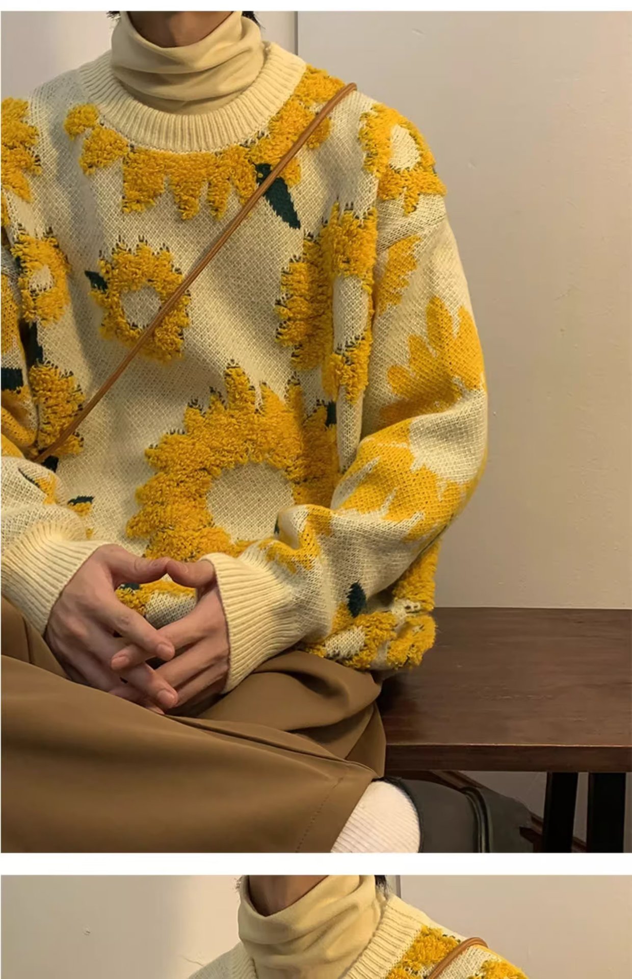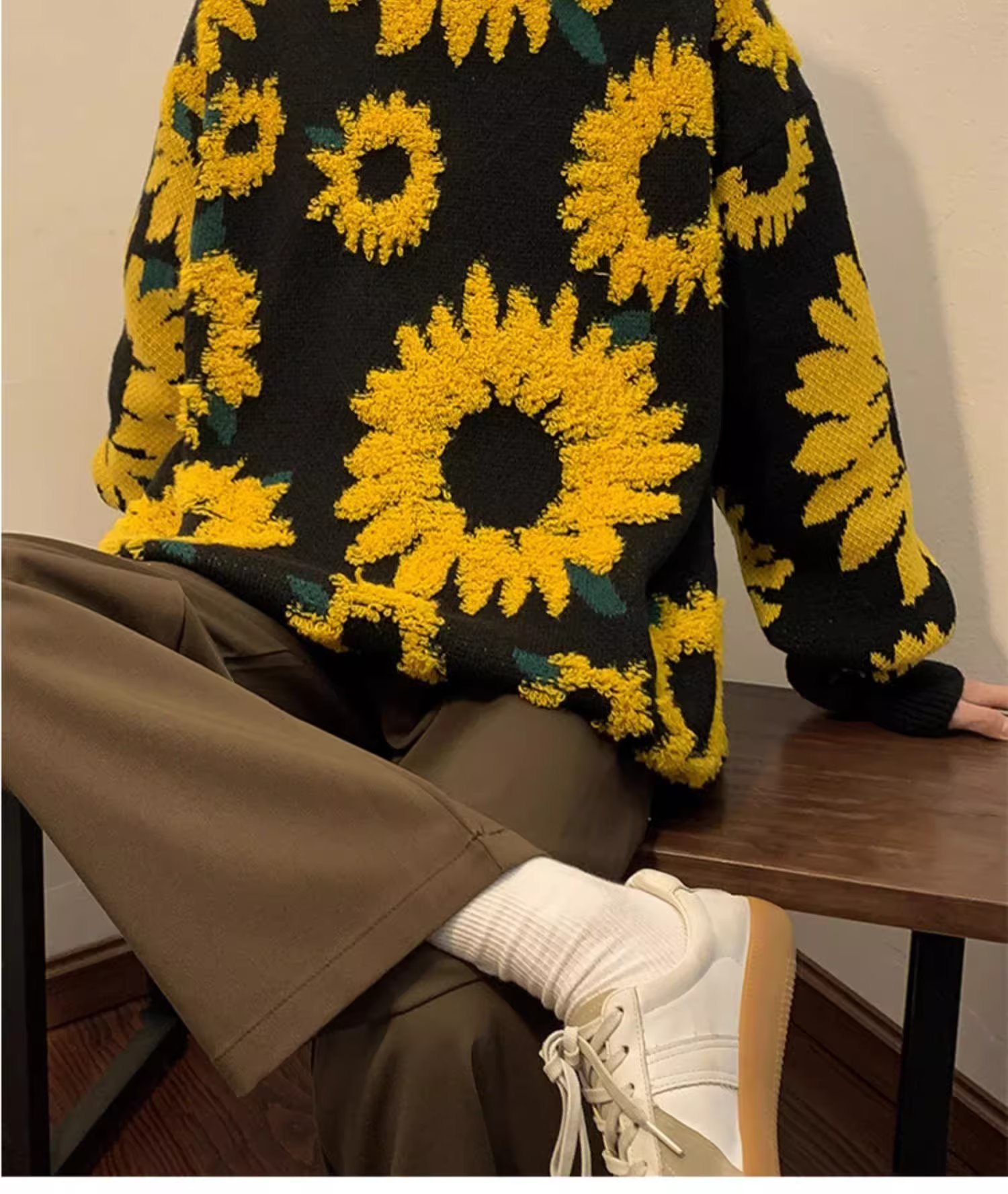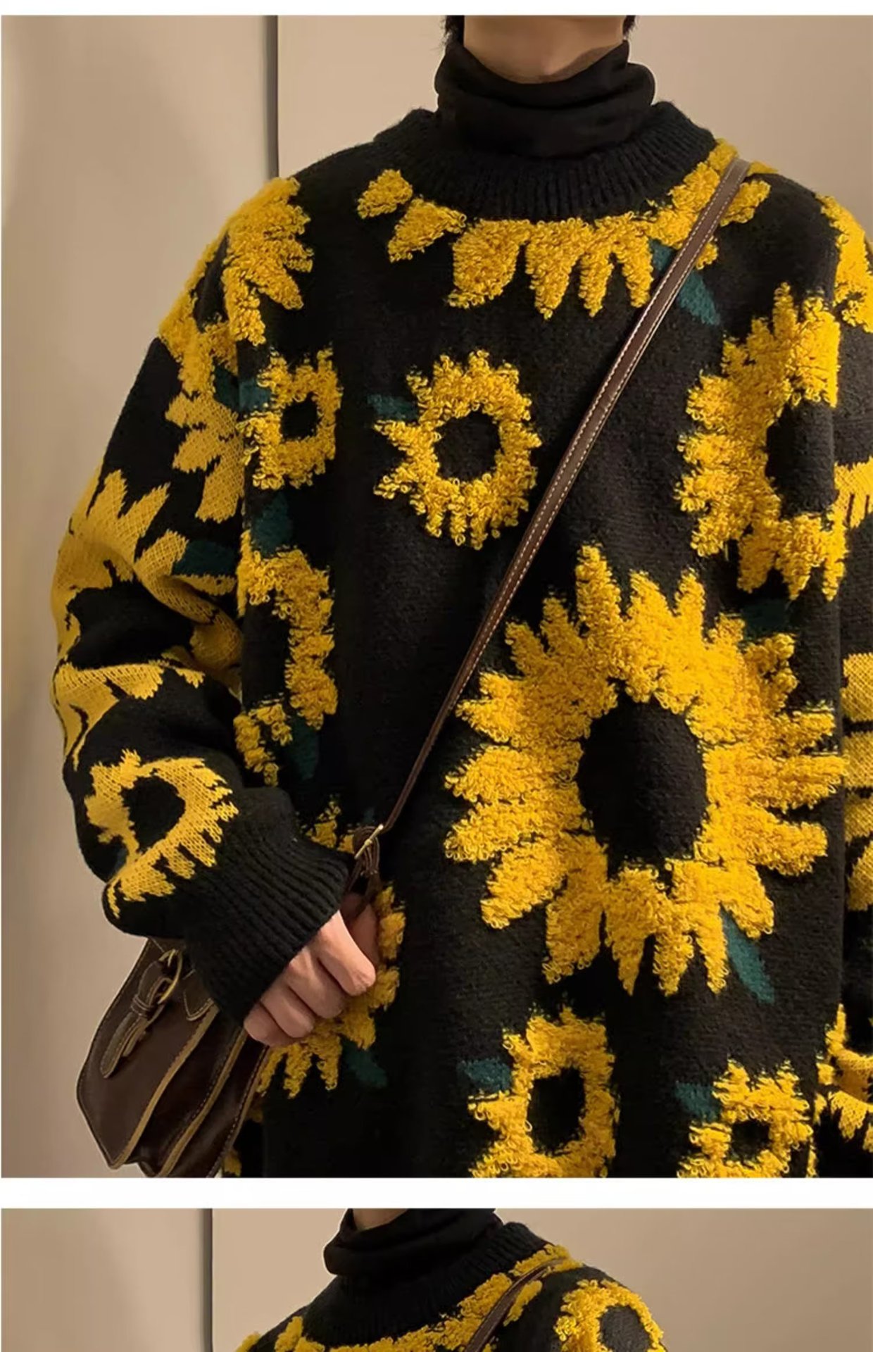 일본 복고풍 국화 자카드 스웨터 남성 가을 유행 브랜드 ins 루즈 라운드 넥 캐주얼 따뜻한 스웨터 재킷스토어 가기