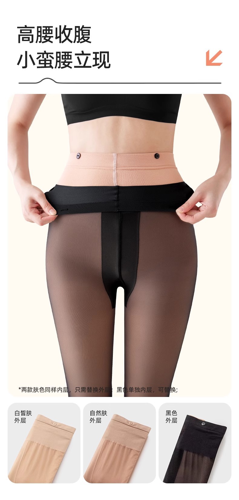 유연하고 이동식 더블 레이어 가짜 고기 검은 피부 빛 다리 아티팩트 여성을위한 봄과 가을 검은 실크 스타킹 유연한 팬티 스타킹