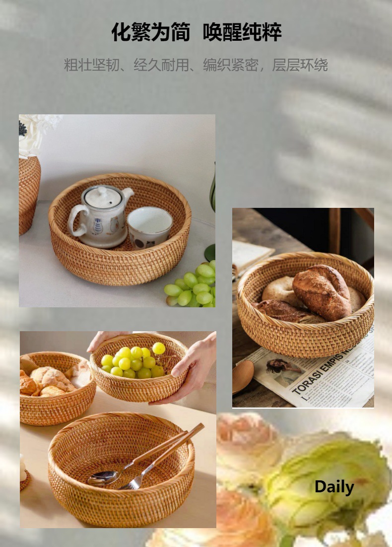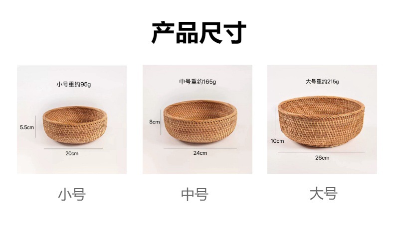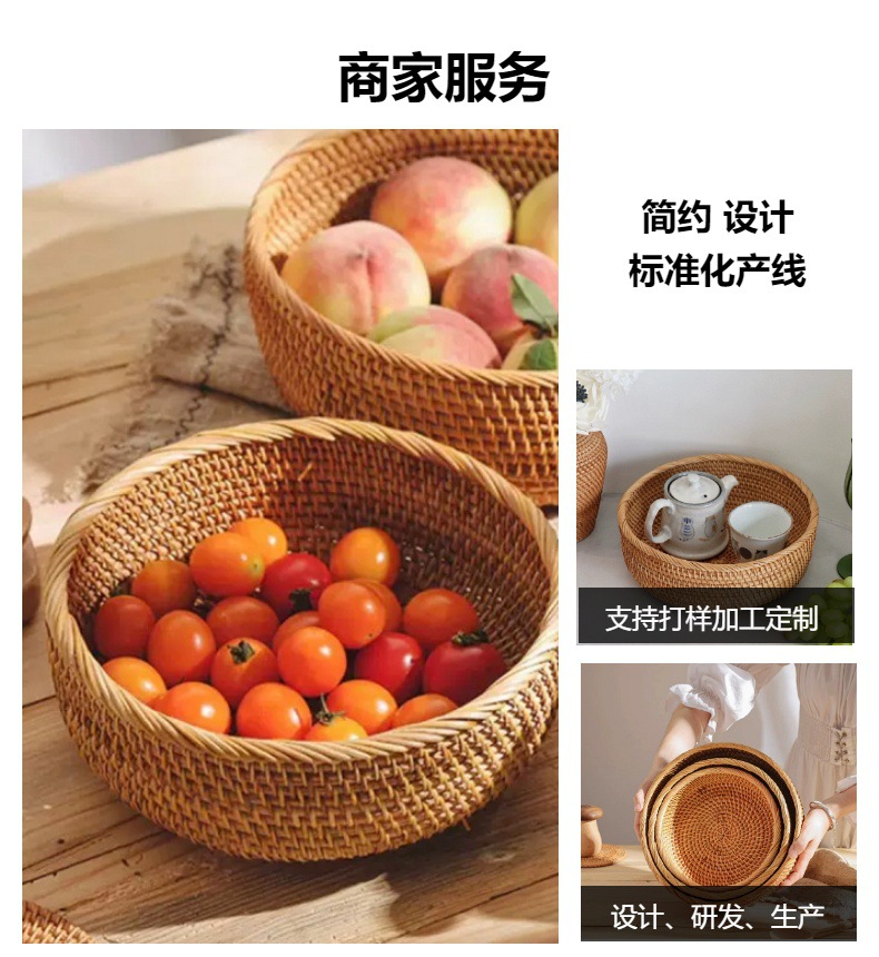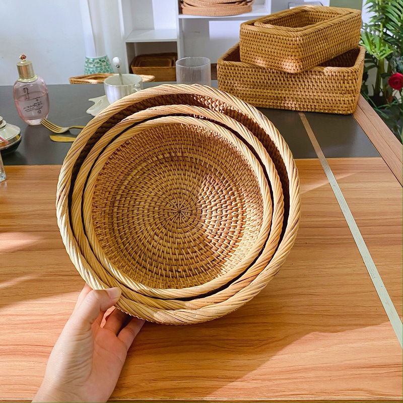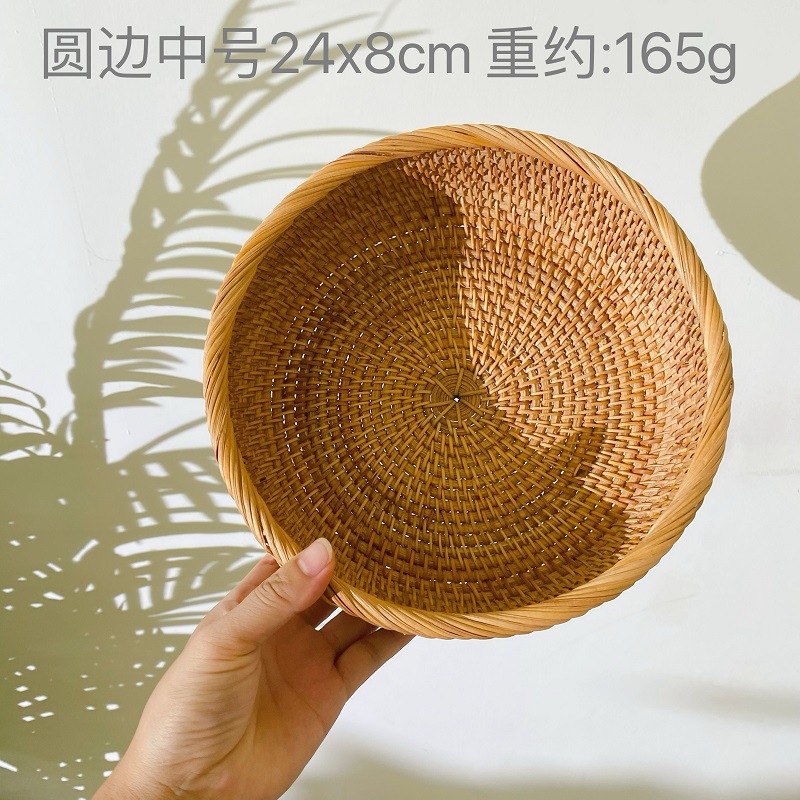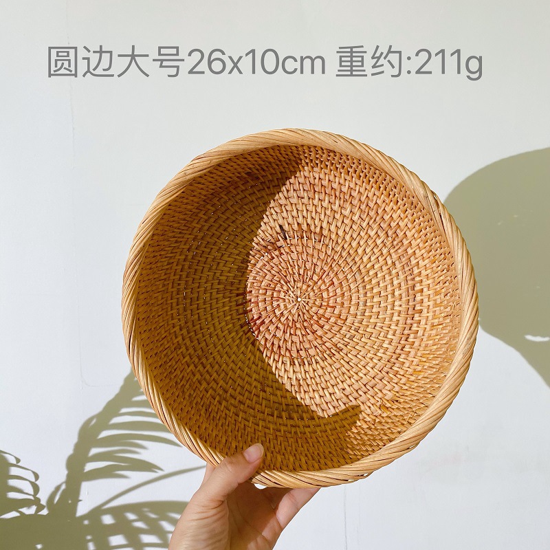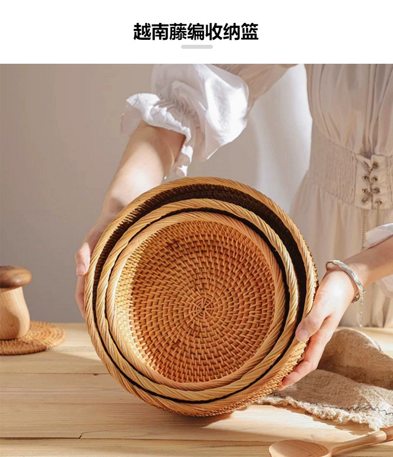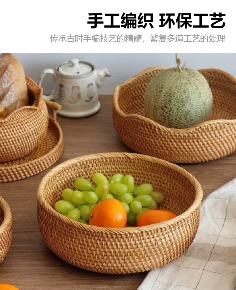 베트남산 등나무 과일 바구니 수납함 거실 간식 바구니 직조 트레이 가정용 둥근 가장자리 과일 바구니 대형스토어 가기