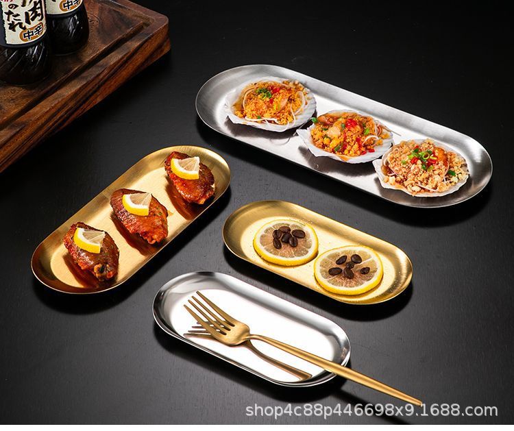 304 스테인리스 타원형 접시 케이크 스낵 접시 보석 수건 트레이 수납 접시 식기 두꺼운 재질스토어 가기