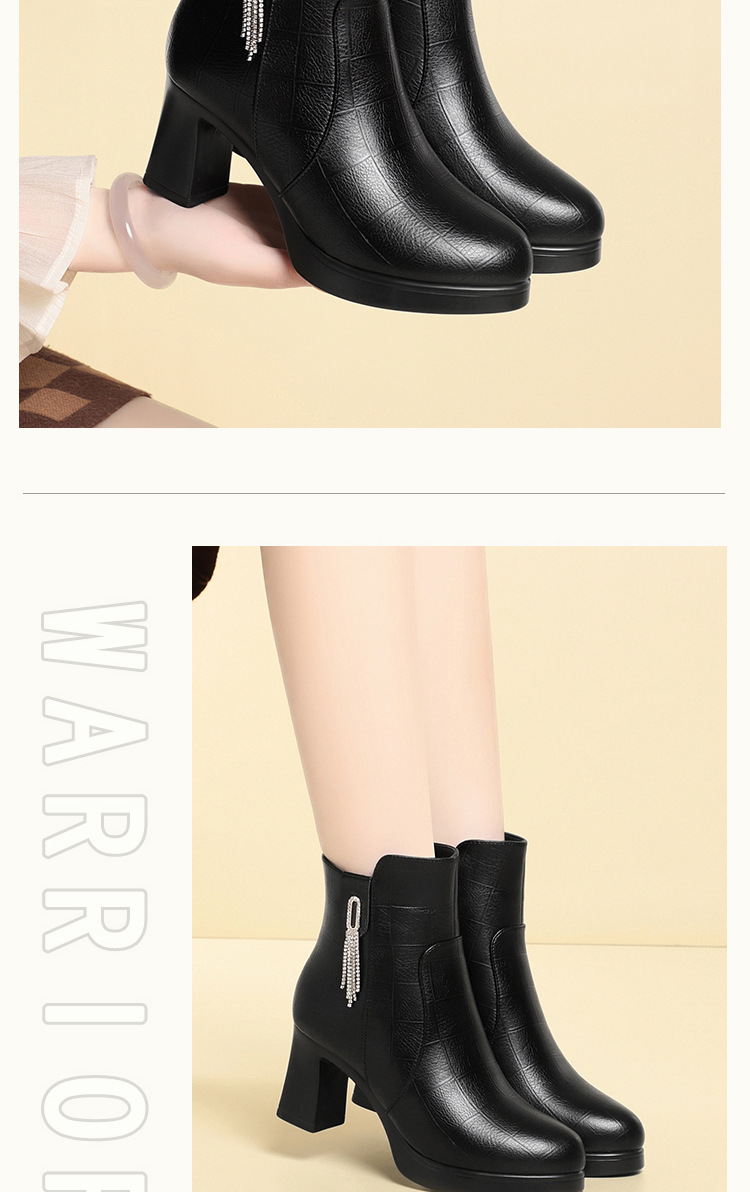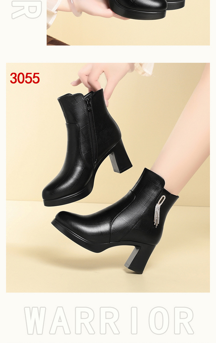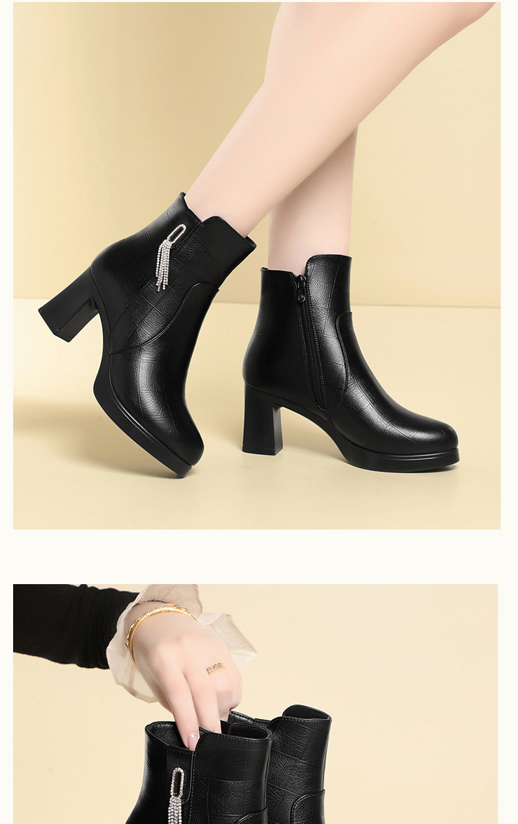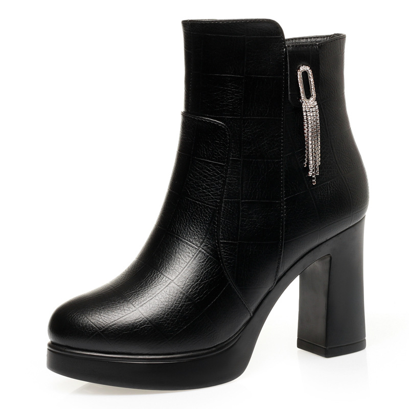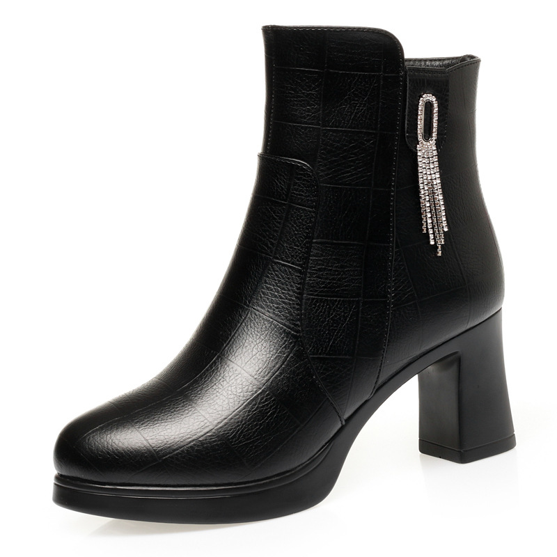 하이힐 쇼트 부츠 여성 가을 겨울 가죽 신발 새로운 패션 부츠 방수 플랫폼 두꺼운 힐 짧은 기모 신발 가죽 코튼 신발 어머니