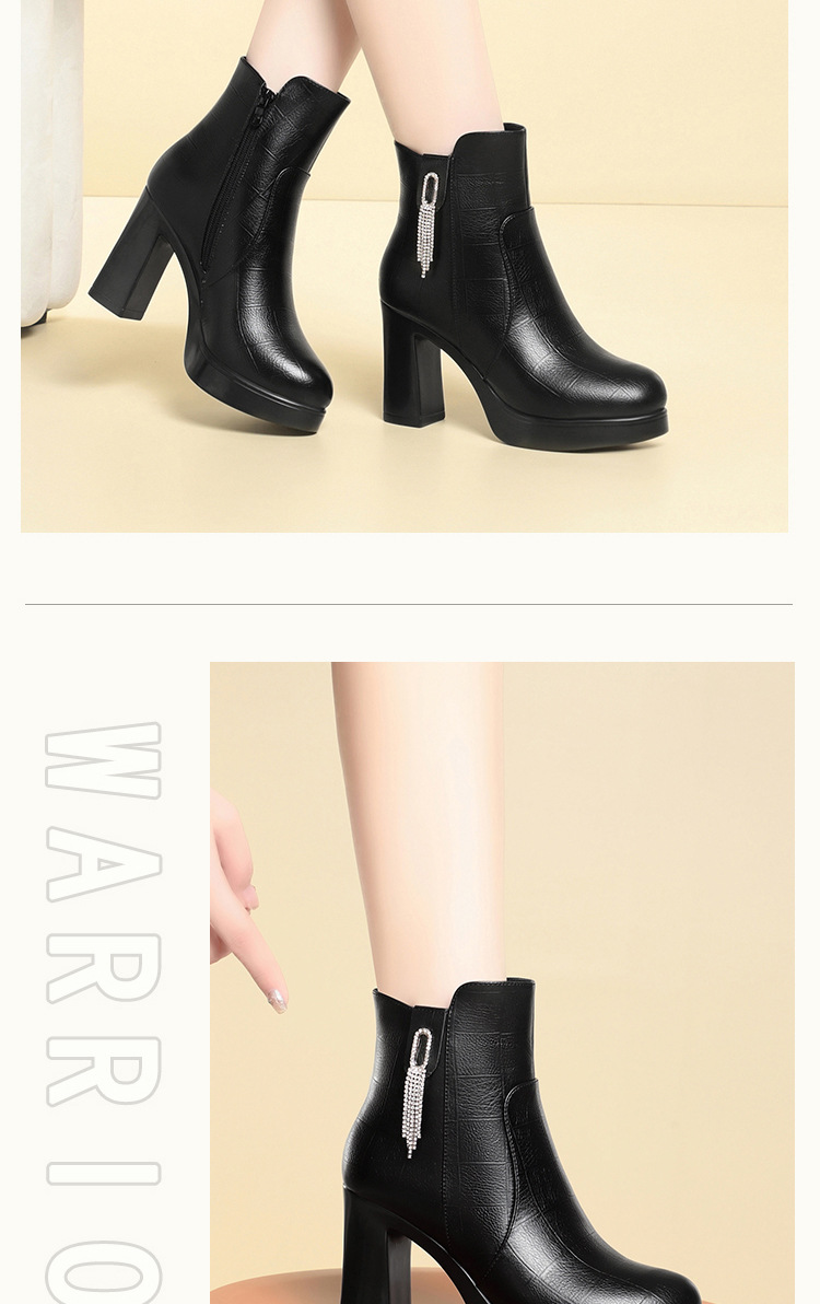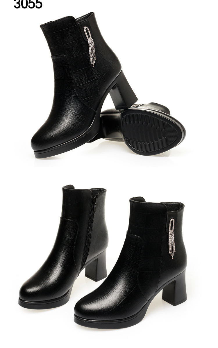 하이힐 쇼트 부츠 여성 가을 겨울 가죽 신발 새로운 패션 부츠 방수 플랫폼 두꺼운 힐 짧은 기모 신발 가죽 코튼 신발 어머니스토어 가기