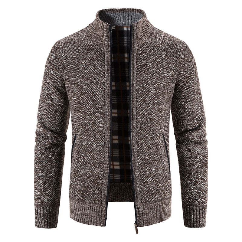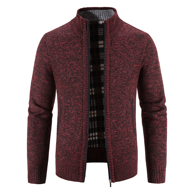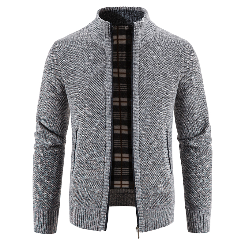 가을과 겨울 기모 두꺼운 카디건 재킷 남성 중년 및 청소년 솔리드 컬러 아우터 남성용 캐주얼 긴팔 니트 스웨터