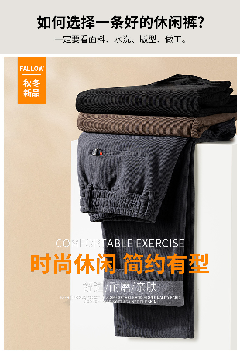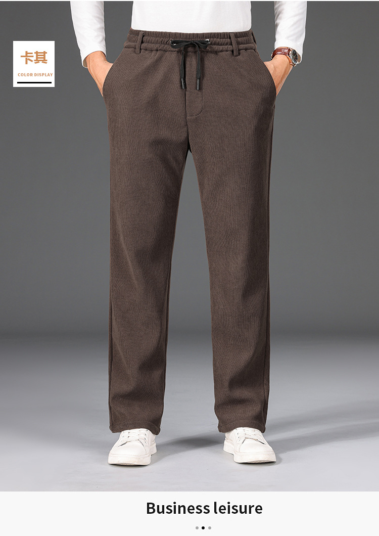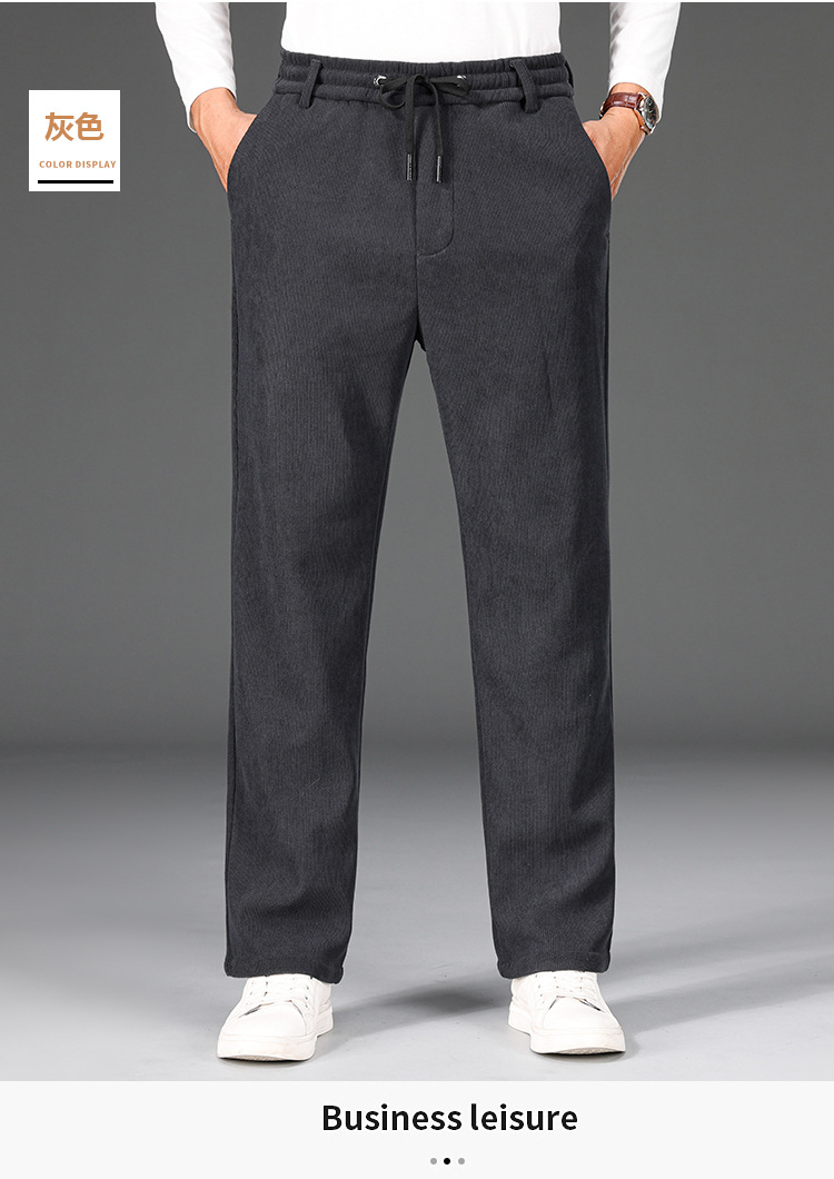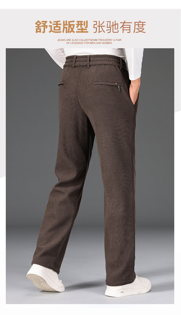 남자의 가을과 겨울 새로운 기모 두꺼운 탄성 허리 탄성 코듀로이 캐주얼 바지 스트레이트 남자 바지스토어 가기