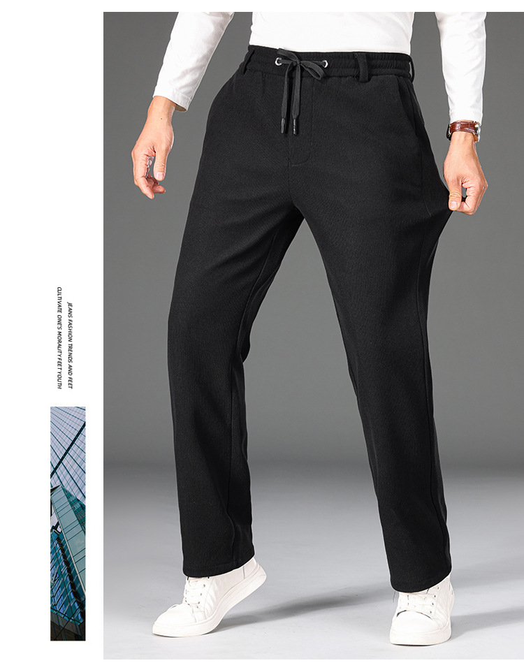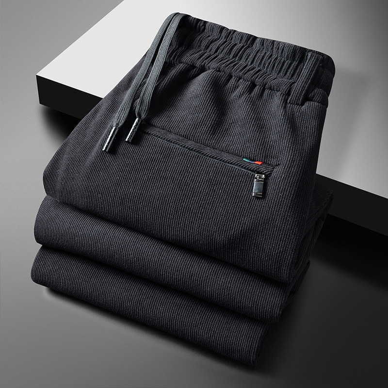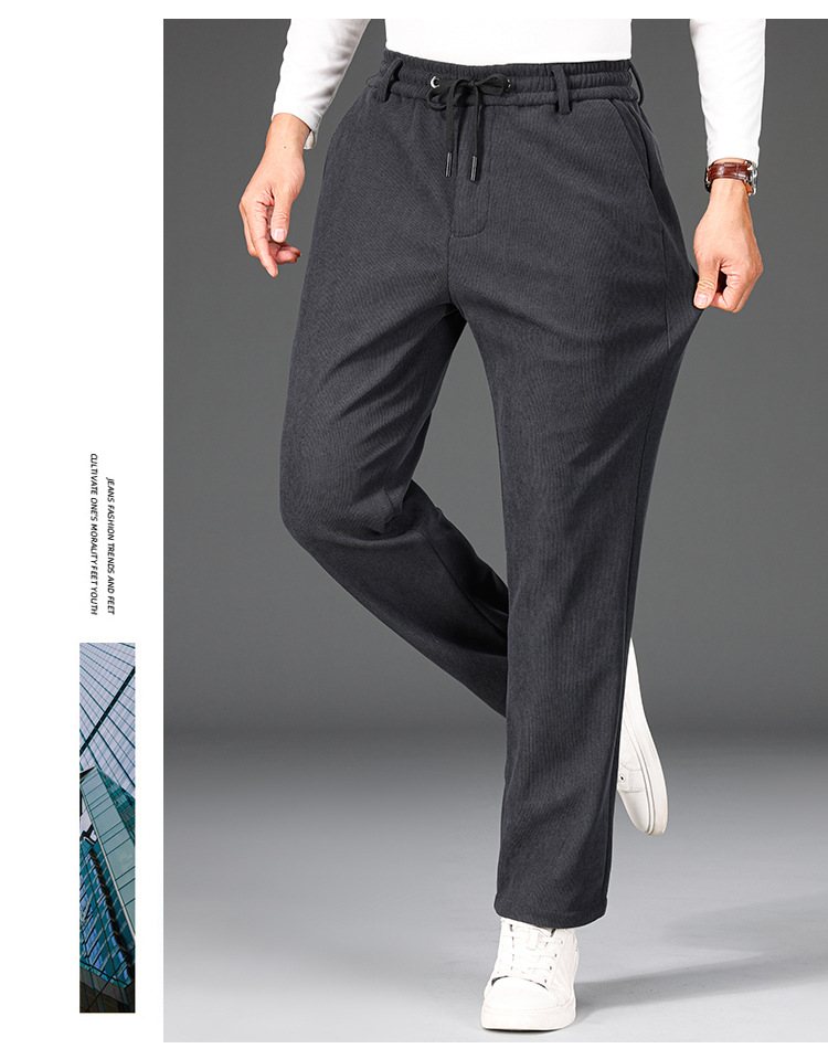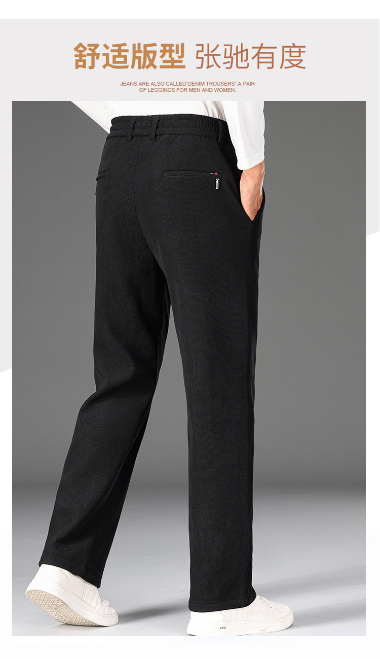 남자의 가을과 겨울 새로운 기모 두꺼운 탄성 허리 탄성 코듀로이 캐주얼 바지 스트레이트 남자 바지