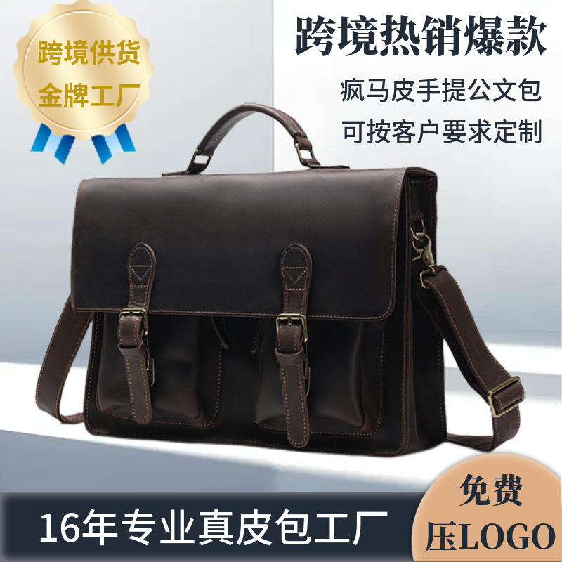 OEM 정품 가죽 복고풍 핸드백 남자 플랩 미친 말 가죽 메신저 가방 출장 비즈니스 노트북 서류 가방스토어 가기
